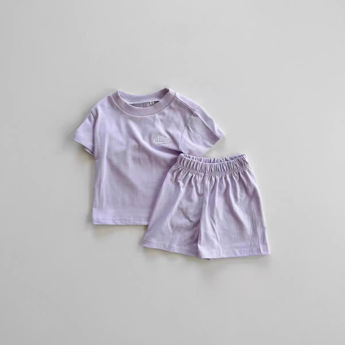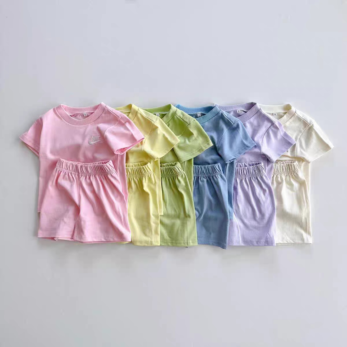 2025 여름 아동복 반팔 반바지 세트 새로운 캐주얼 스포츠 스타일 자수 티셔츠 투피스 패션 패션 패션 패션스토어 가기
