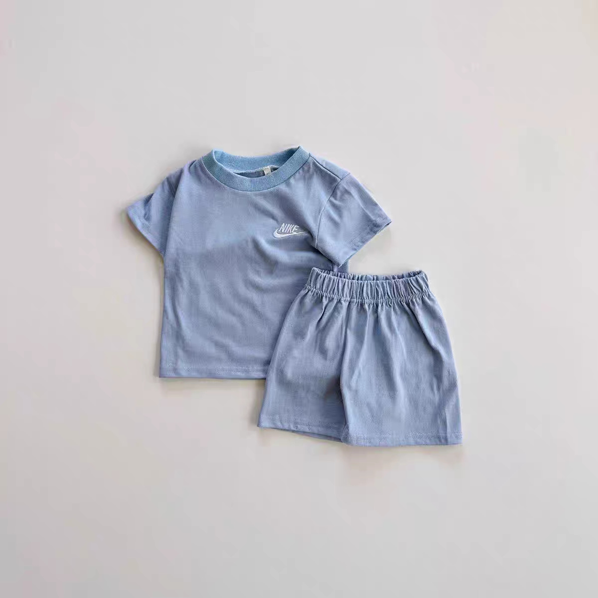 2025 여름 아동복 반팔 반바지 세트 새로운 캐주얼 스포츠 스타일 자수 티셔츠 투피스 패션 패션 패션 패션