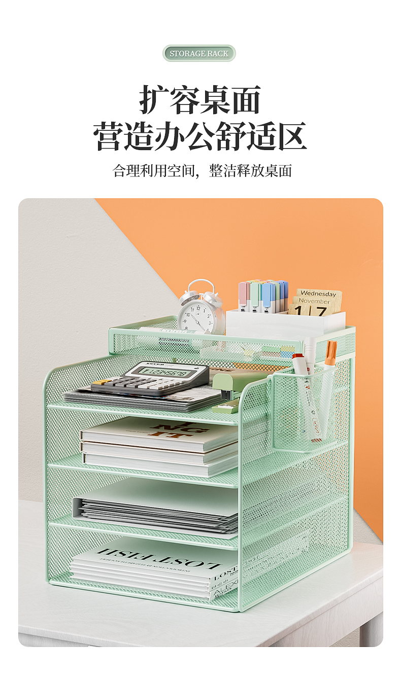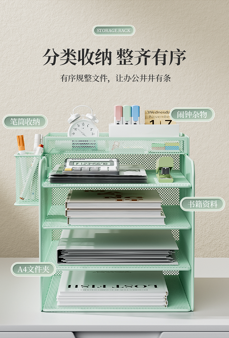 사무실 책상 파일 저장 랙 금속 책 스탠드 파일 랙 파일 프레임 철 다층 폴더 저장 상자 바람 소스스토어 가기