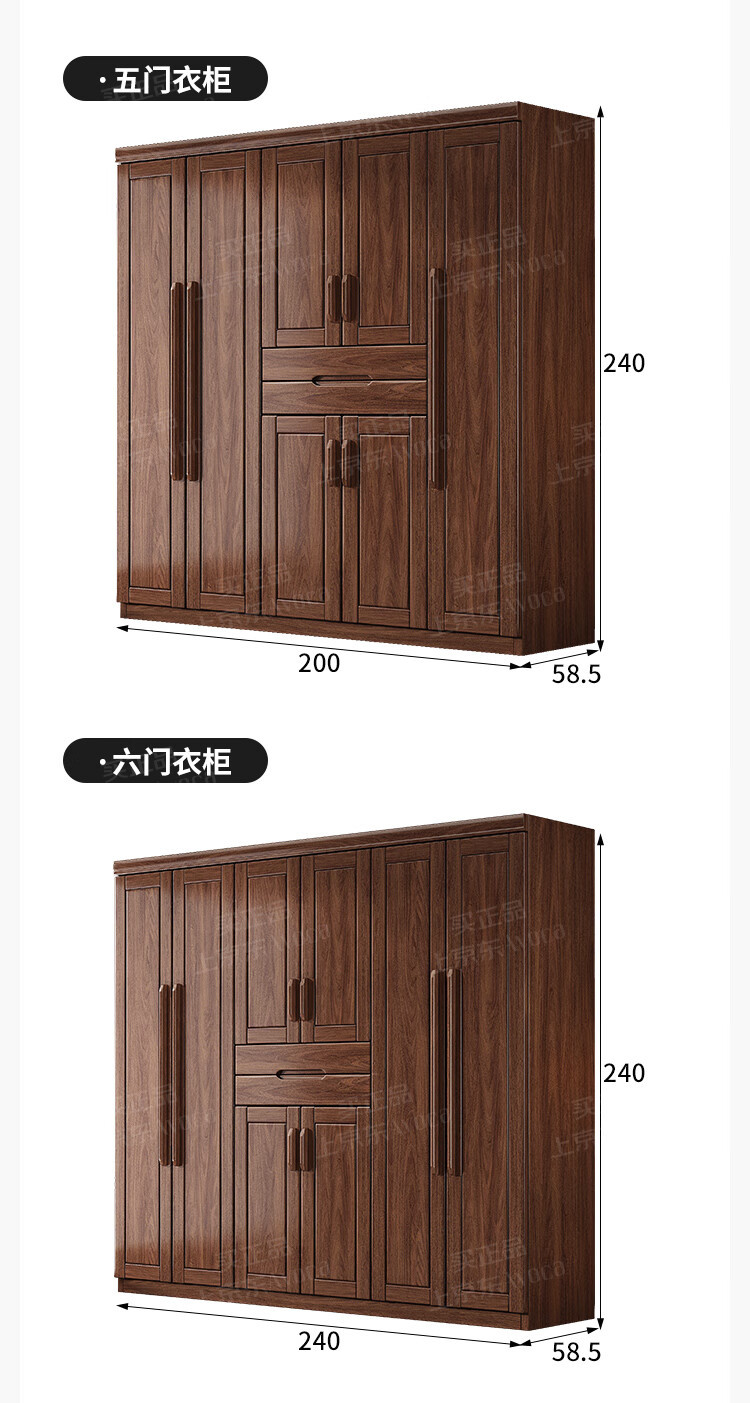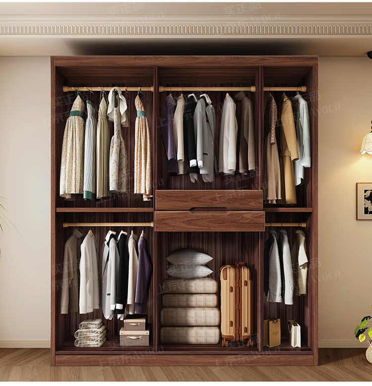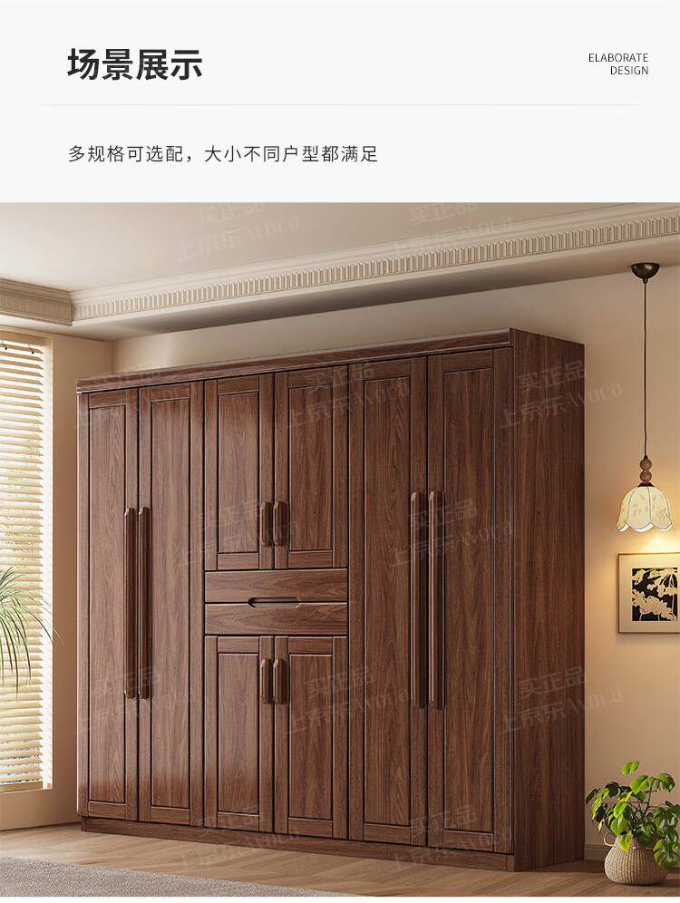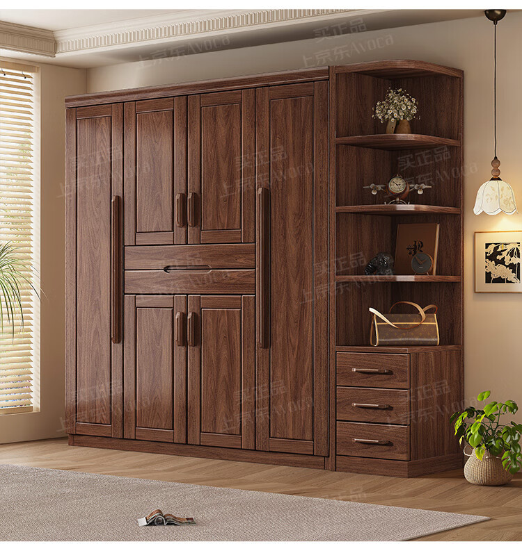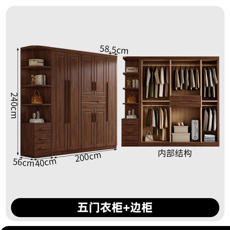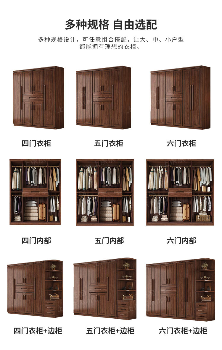새로운 중국 스타일 검은 호두 나무 옷장 가구 현대 침실 옷 저장 캐비닛 간단한 대용량 저장 캐비닛스토어 가기