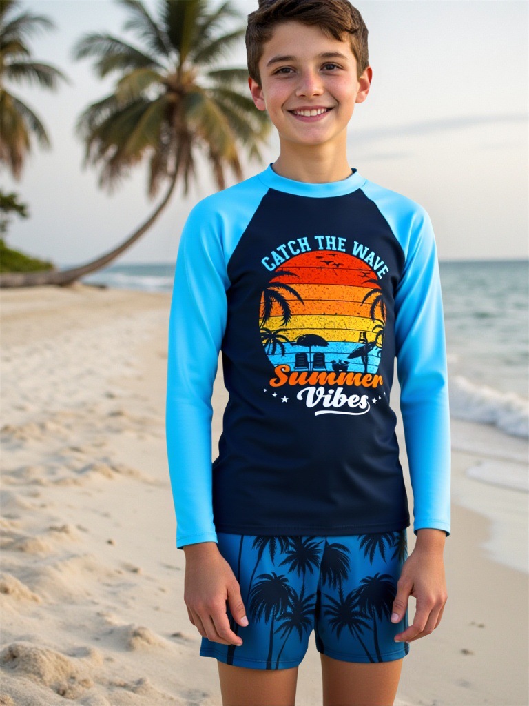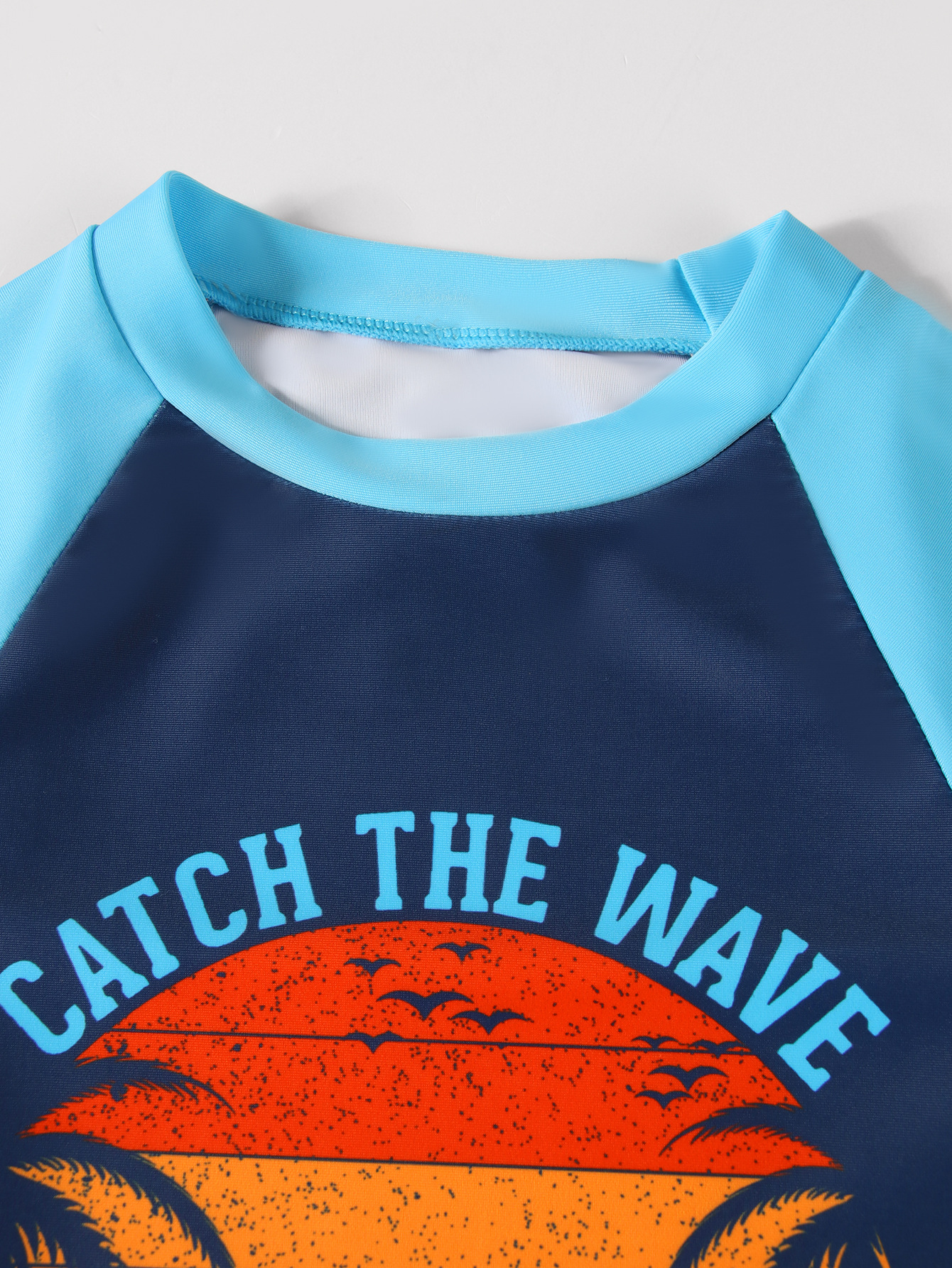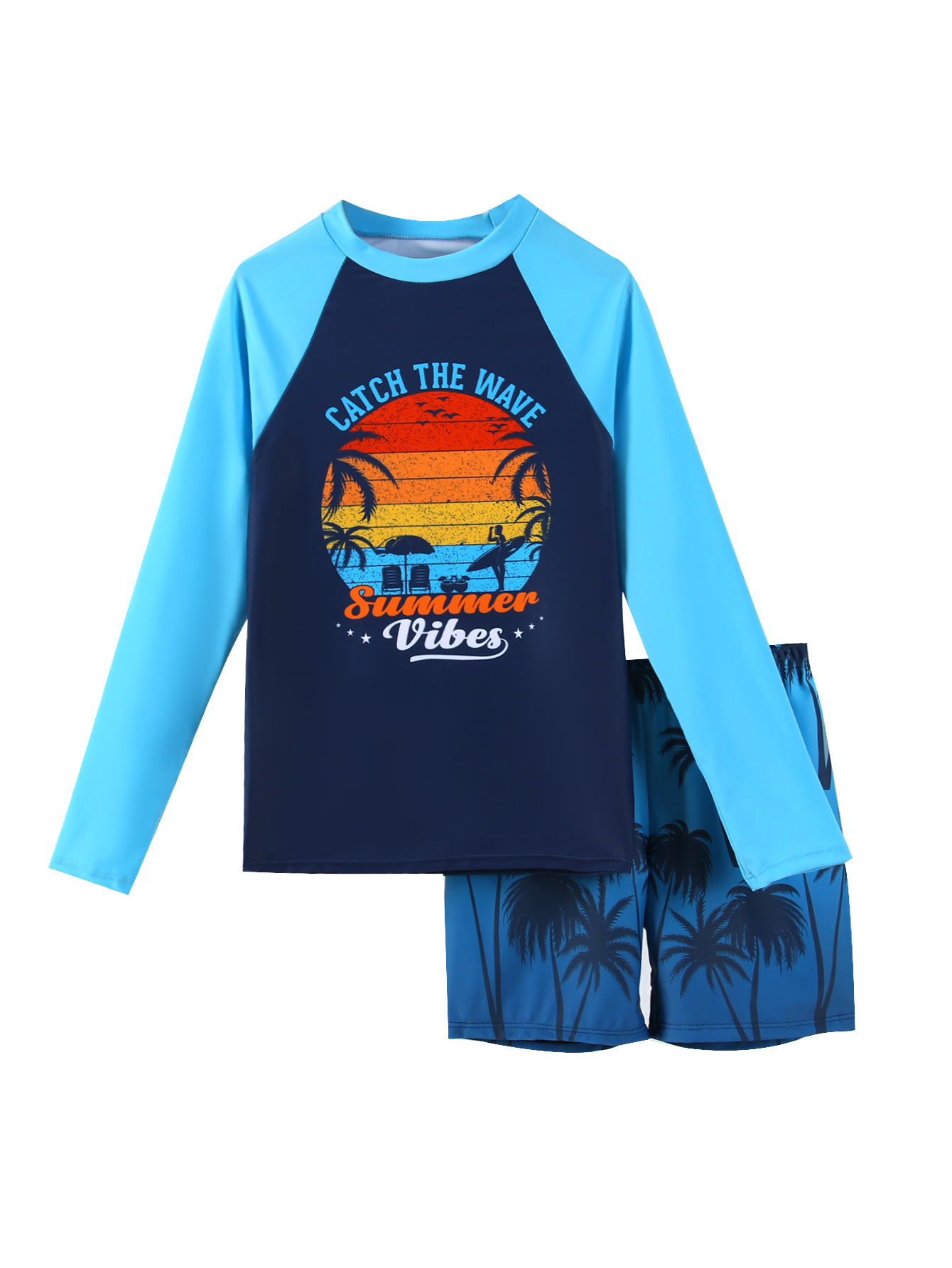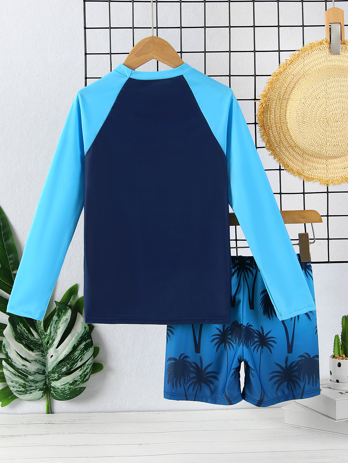 어린이 수영복 소년의 긴 소매 분할 수영복 2025 새로운 해변 패턴 태양 방지 빠른 건조 소년의 수영복 여름
