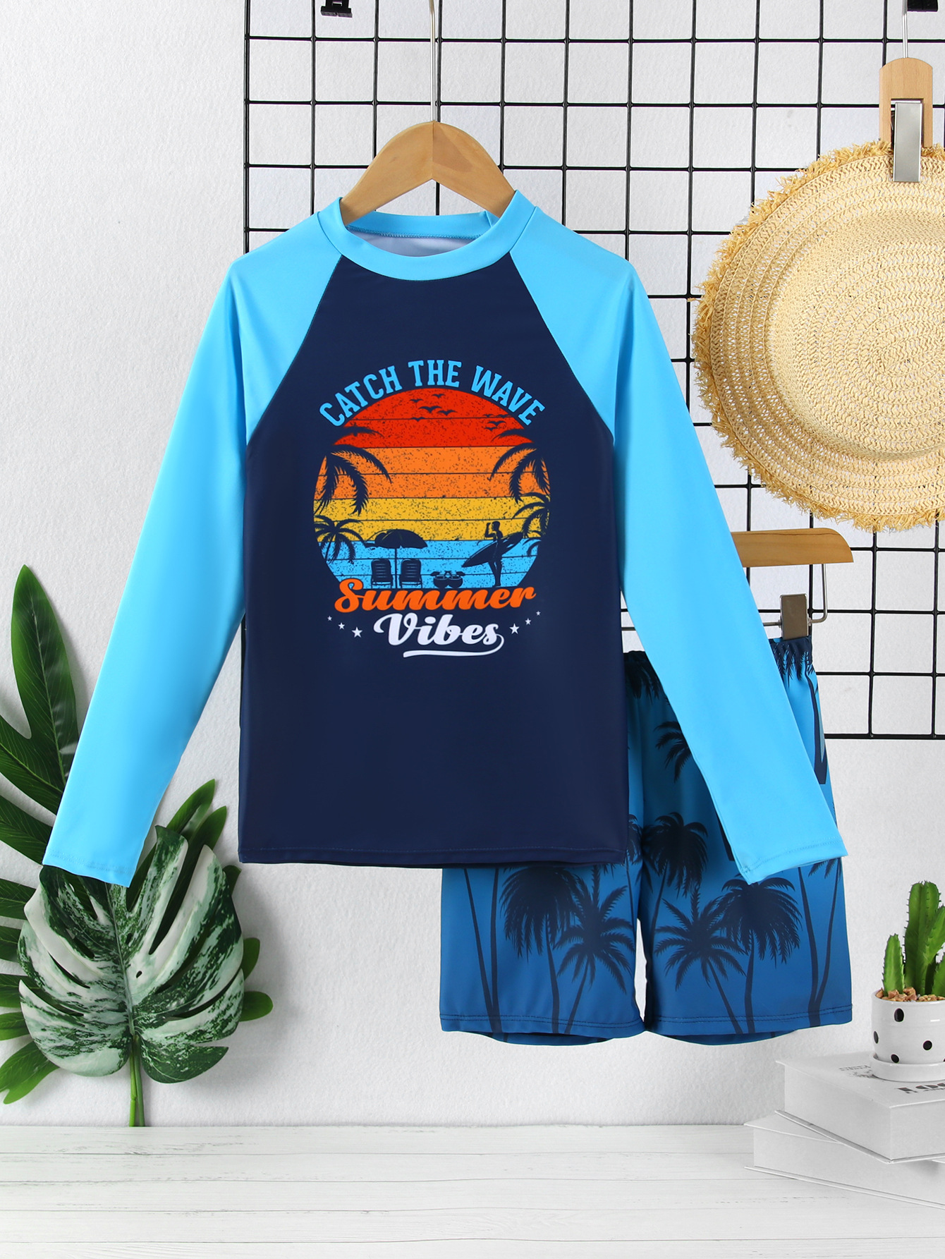 어린이 수영복 소년의 긴 소매 분할 수영복 2025 새로운 해변 패턴 태양 방지 빠른 건조 소년의 수영복 여름스토어 가기