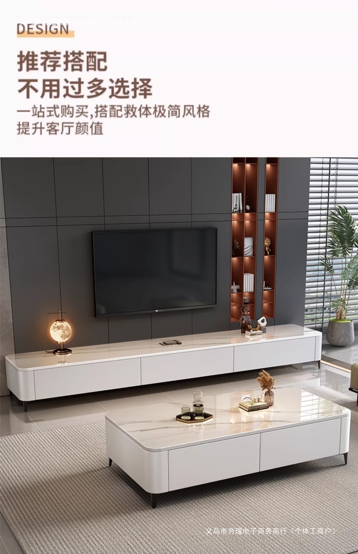 • [설치 불필요] 1.2m 더블 커피 테이블 + 1.8m TV 캐비닛 (광택 스노우 마운틴 화이트 + 화이트 캐비닛 소프트 패키지))