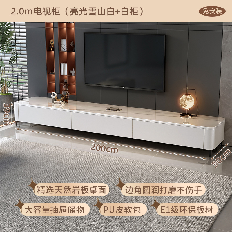 • [설치 불필요] 2.0m 3단 서랍형 TV 캐비닛(광택 스노우 마운틴 화이트 + 화이트 캐비닛 소프트 패키지)