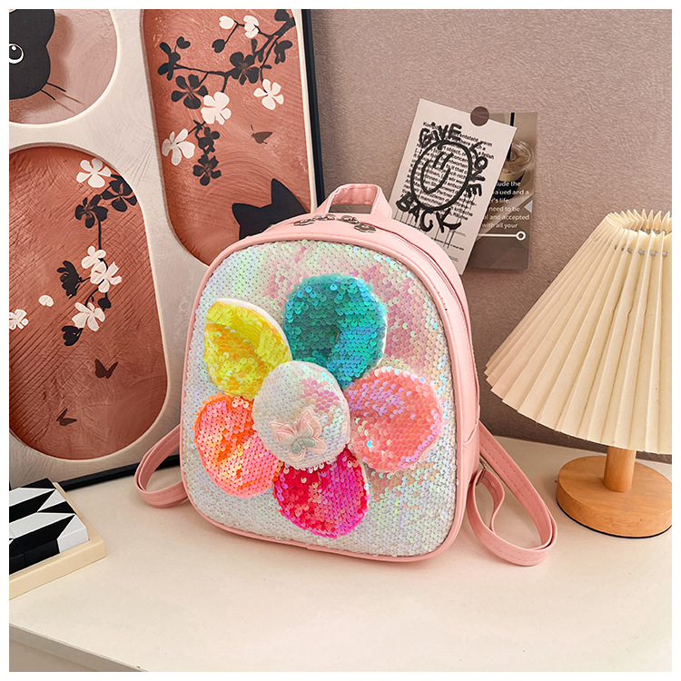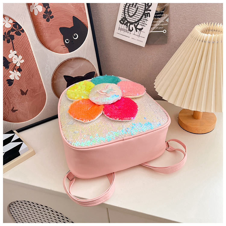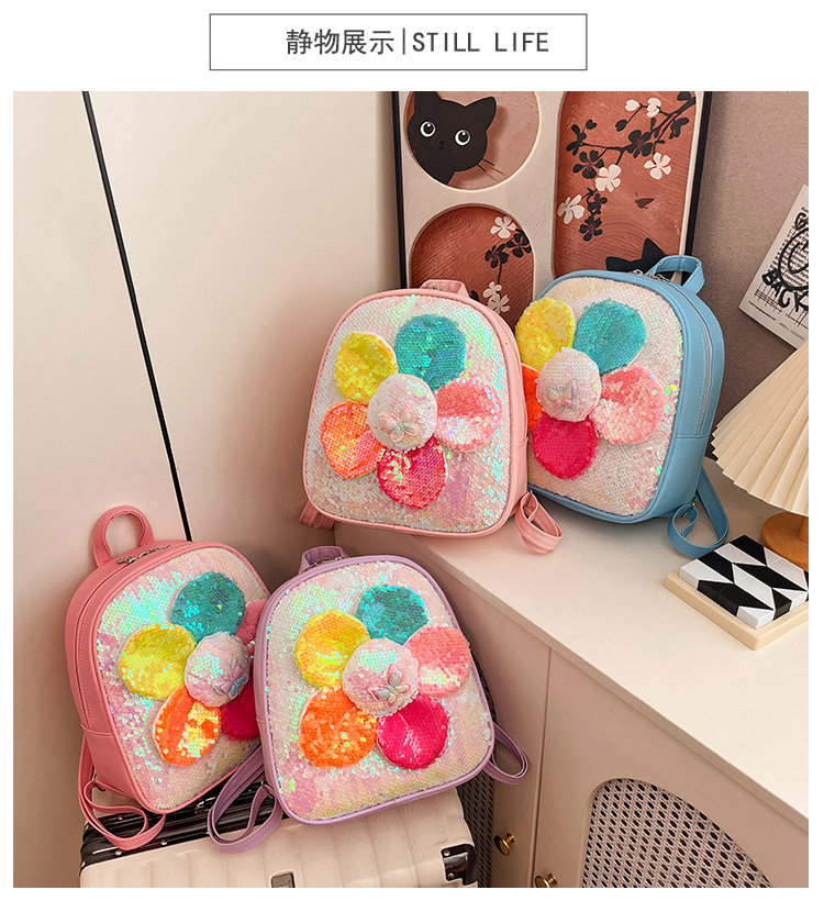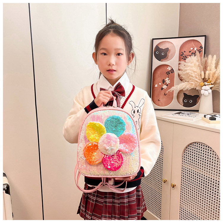 2025 봄 새로운 세퀸 꽃 어린이 배낭 서양식 유치원 작은 배낭 만화 부드러운 가죽 작은 학교 가방