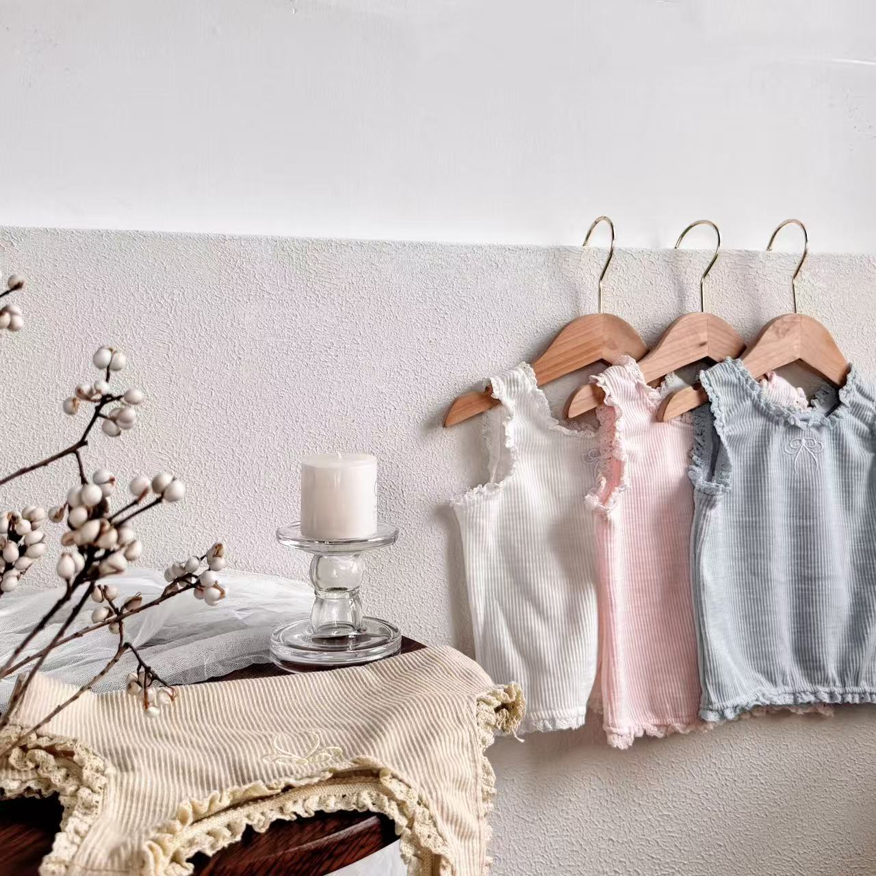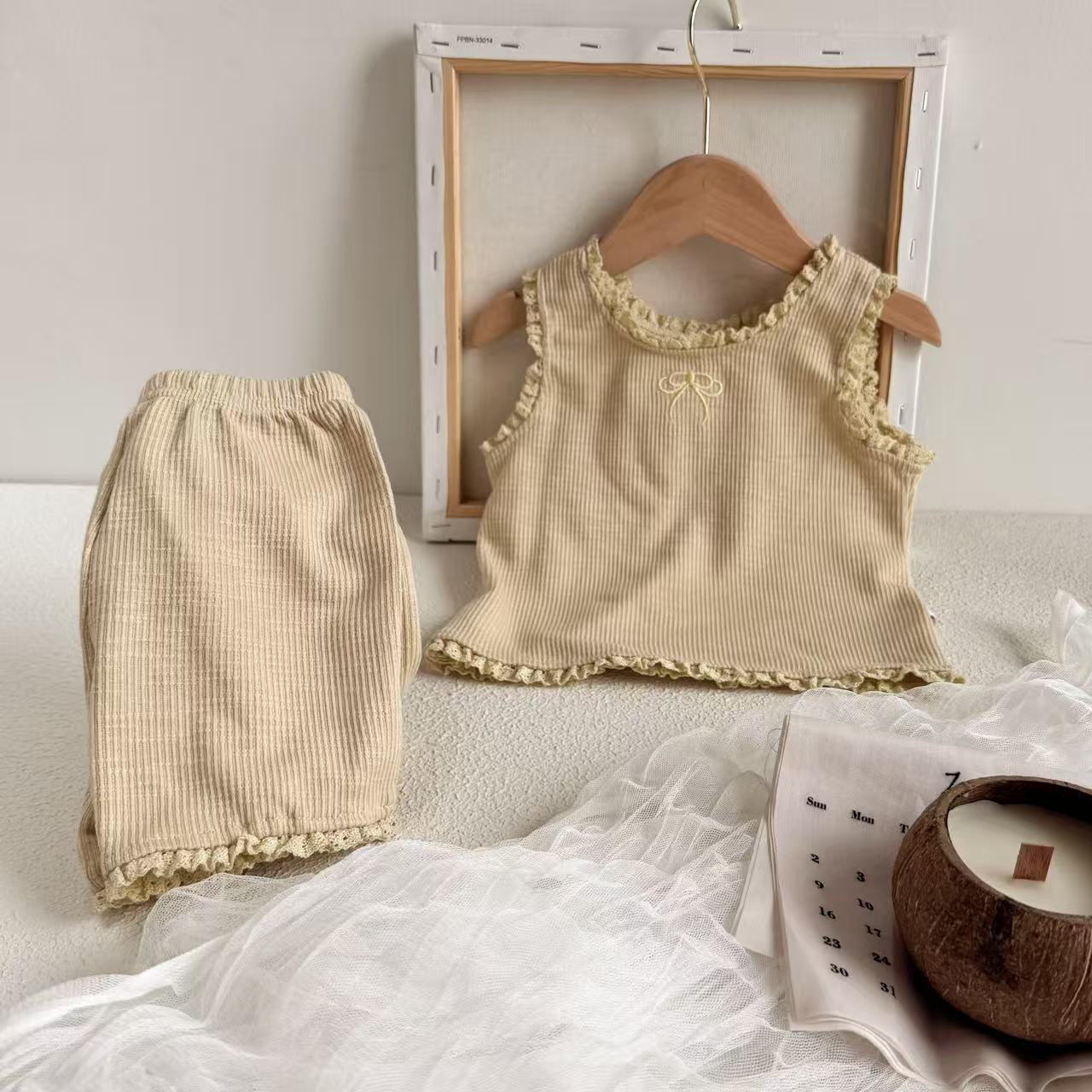 한국 아동복 아동 신작 귀고리 조끼 투피스 세트 여름 민소매 탑 반바지 얇은 양복