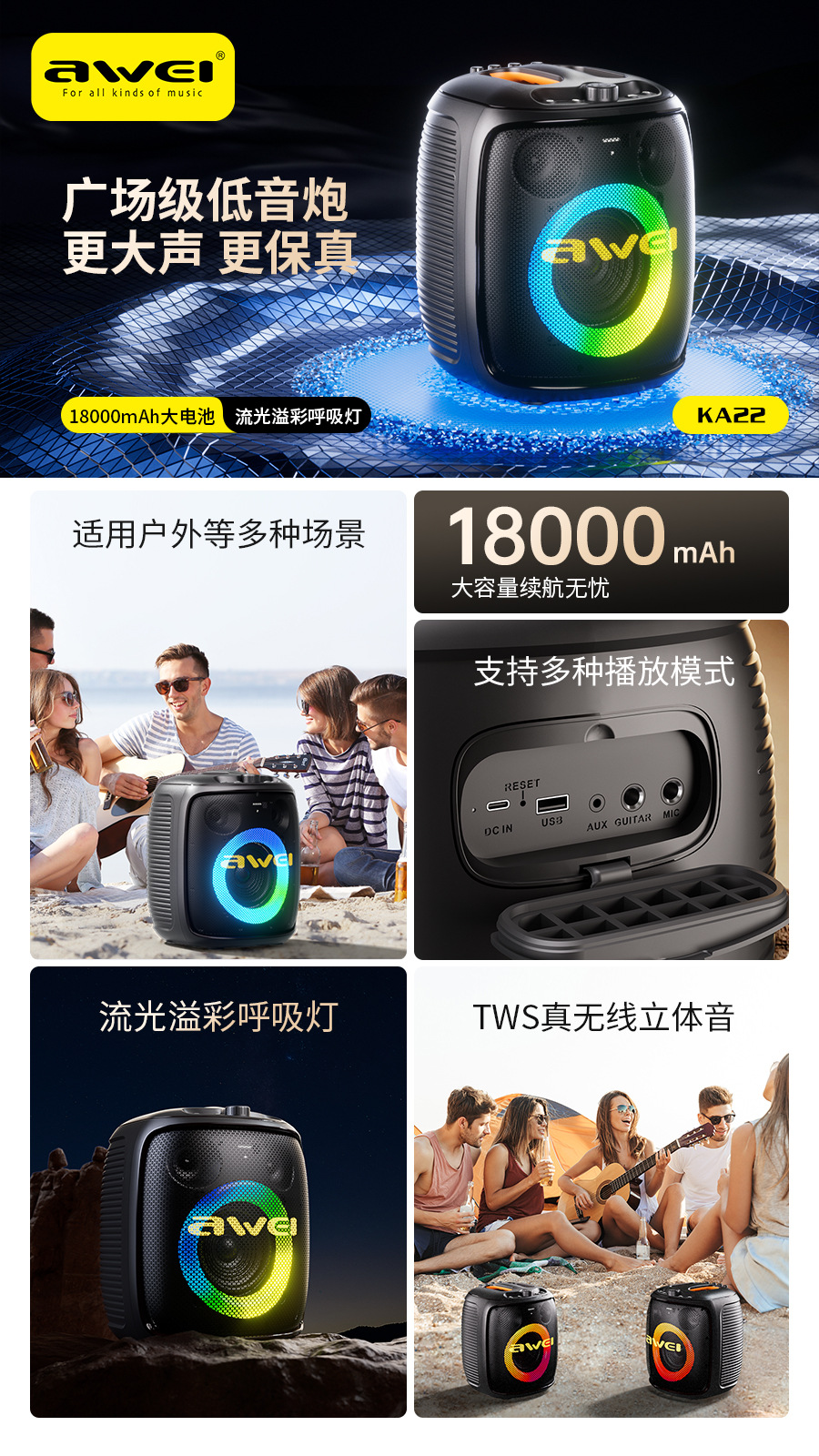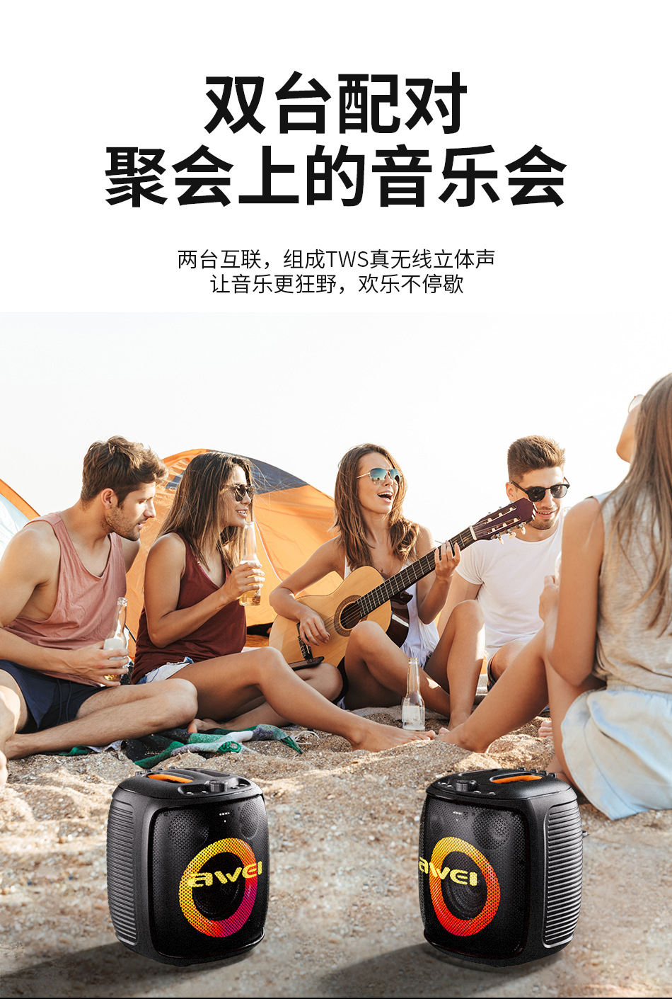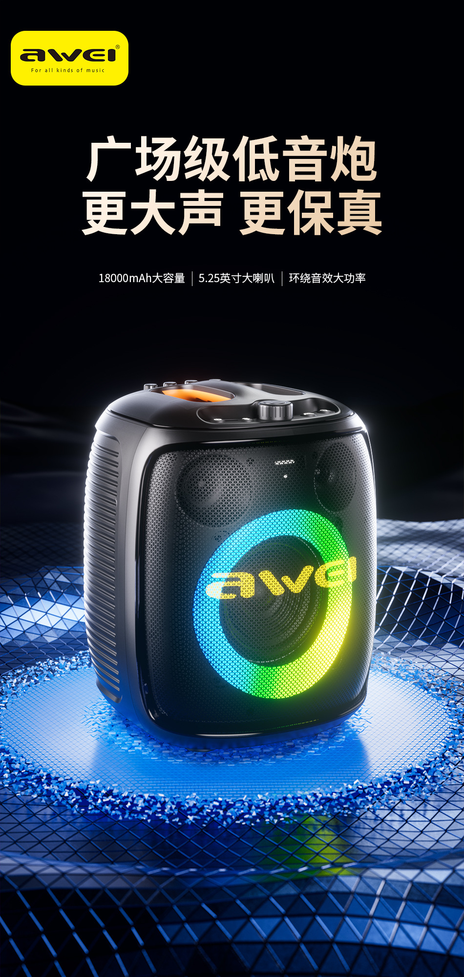 AWEI 새로운 블루투스 스피커 야외 휴대용 50W 서브 우퍼 긴 내구성 KA22 스퀘어 댄스 오디오스토어 가기