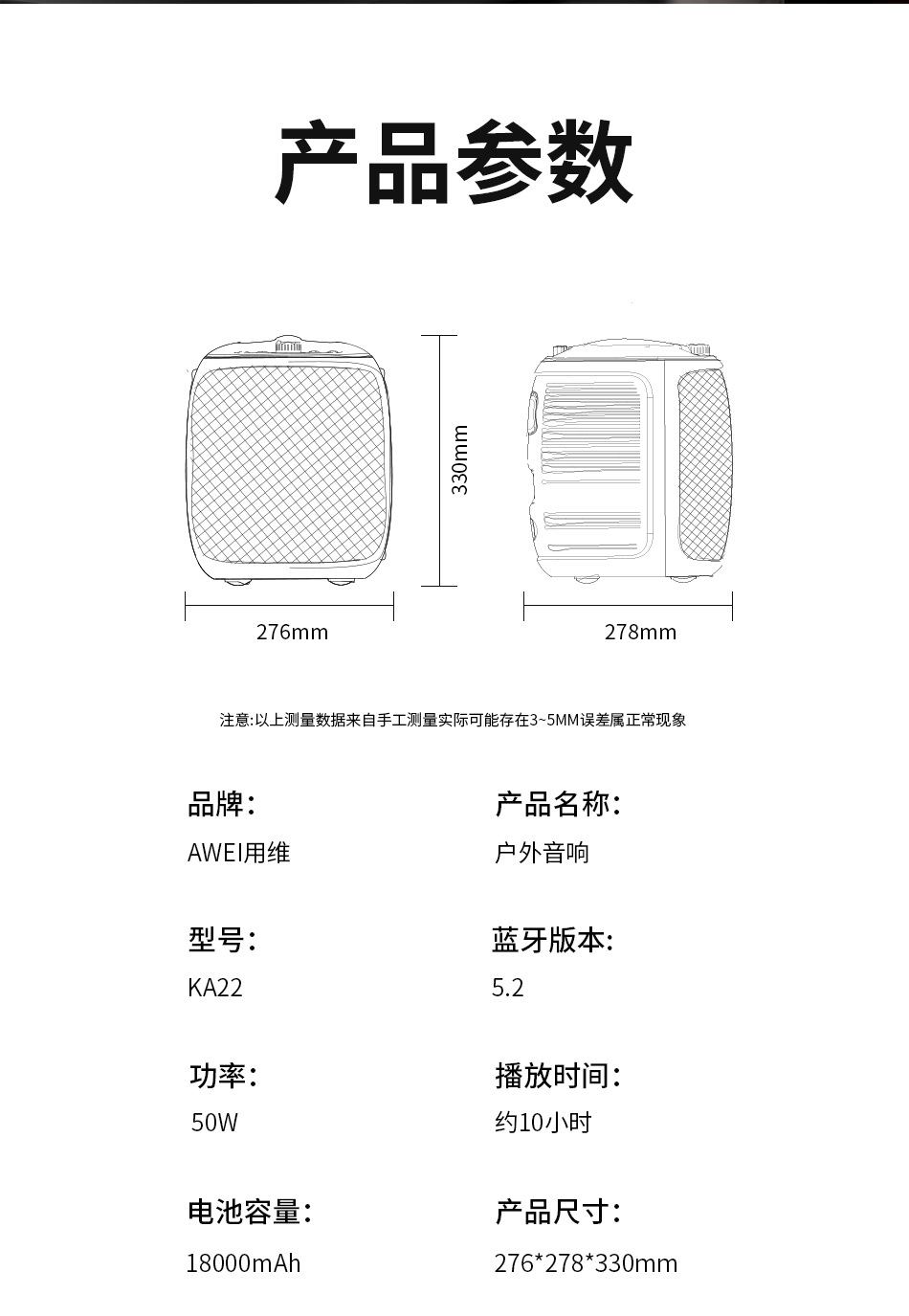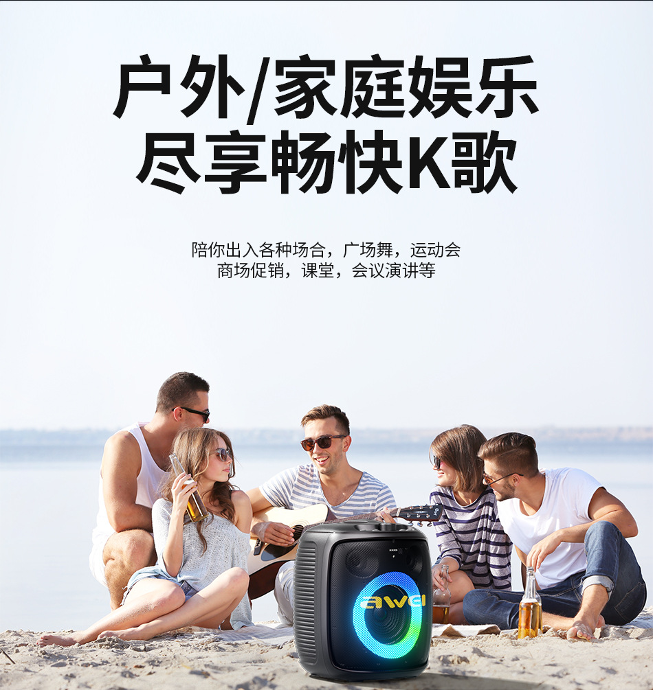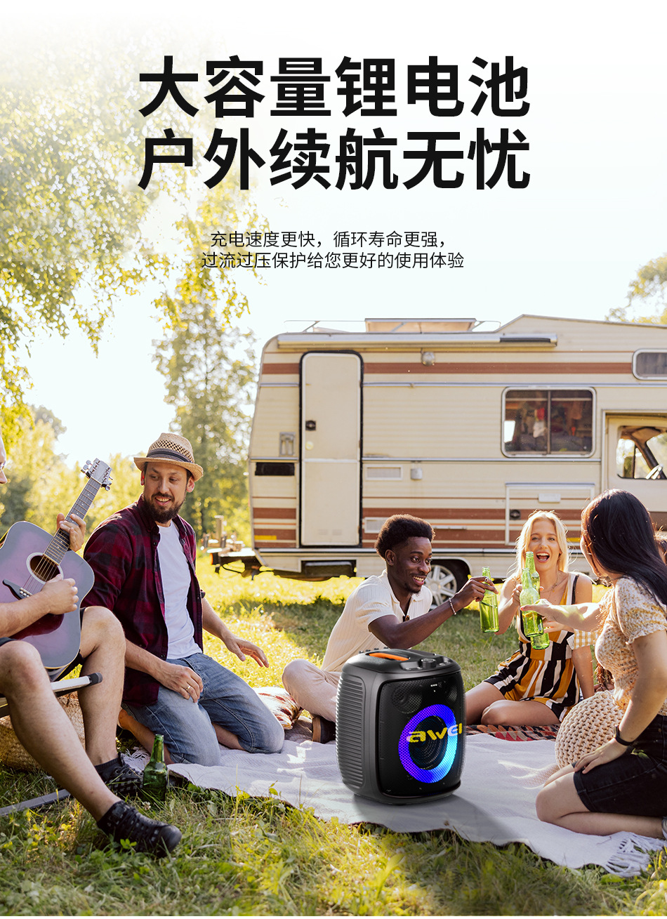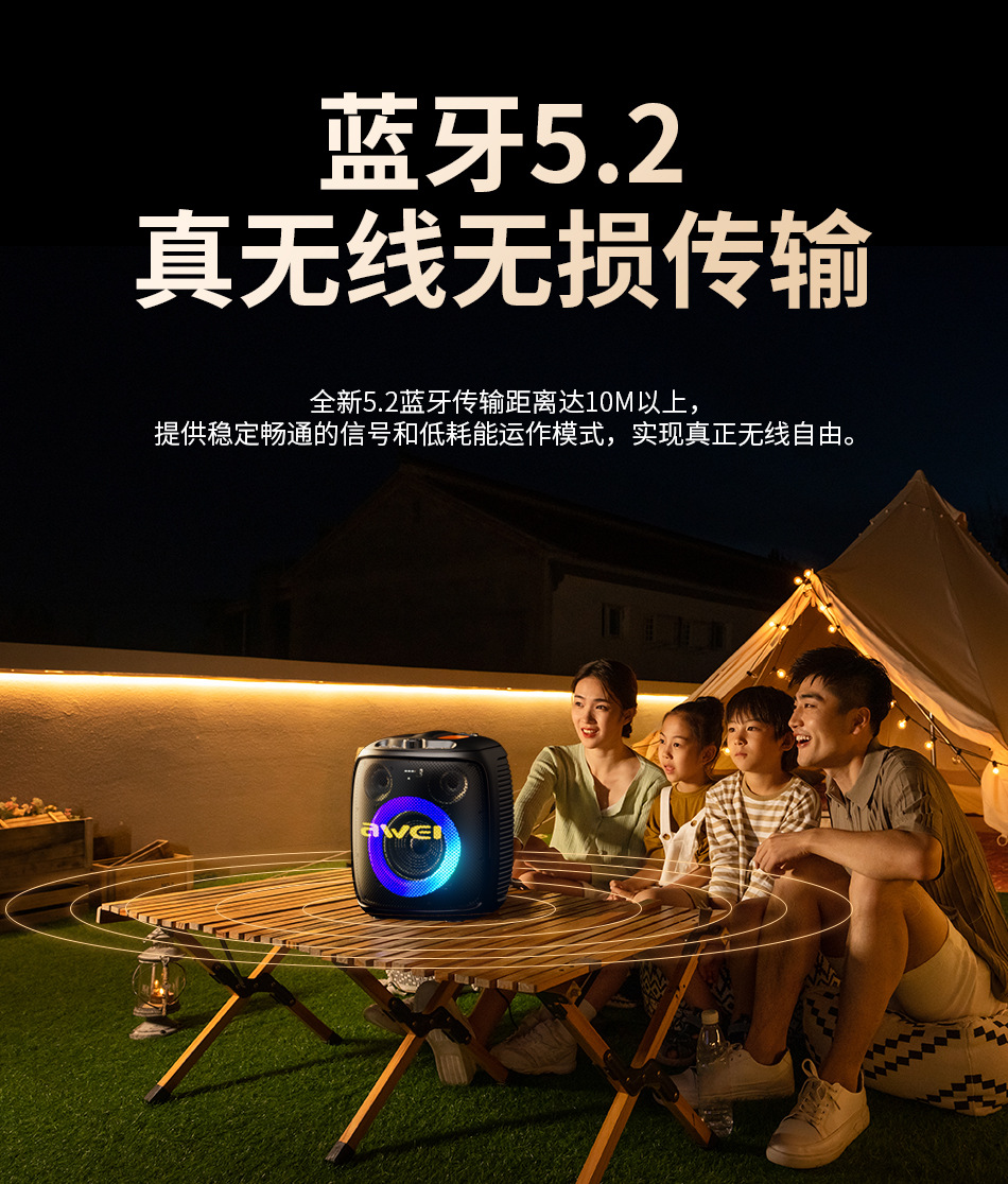 AWEI 새로운 블루투스 스피커 야외 휴대용 50W 서브 우퍼 긴 내구성 KA22 스퀘어 댄스 오디오스토어 가기