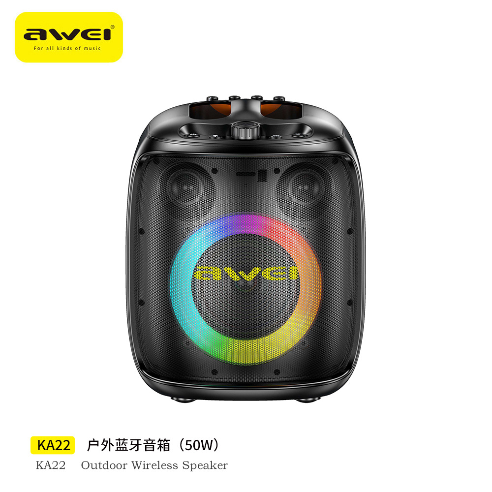 AWEI 새로운 블루투스 스피커 야외 휴대용 50W 서브 우퍼 긴 내구성 KA22 스퀘어 댄스 오디오
