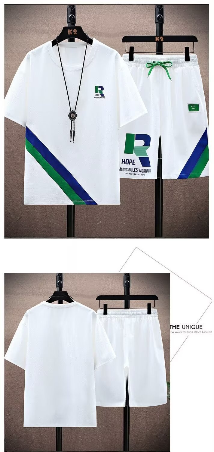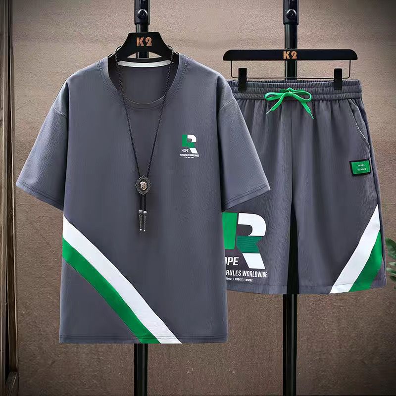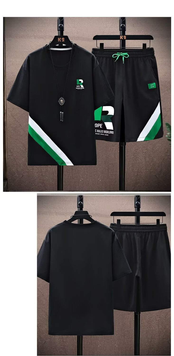 청소년 새로운 짧은 소매 느슨한 레저 스포츠 세트 도매 봄과 여름 잘 생긴 남자의 두 조각 세트