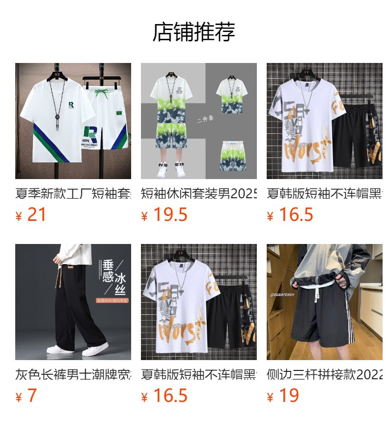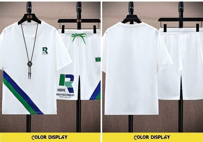 청소년 새로운 짧은 소매 느슨한 레저 스포츠 세트 도매 봄과 여름 잘 생긴 남자의 두 조각 세트스토어 가기