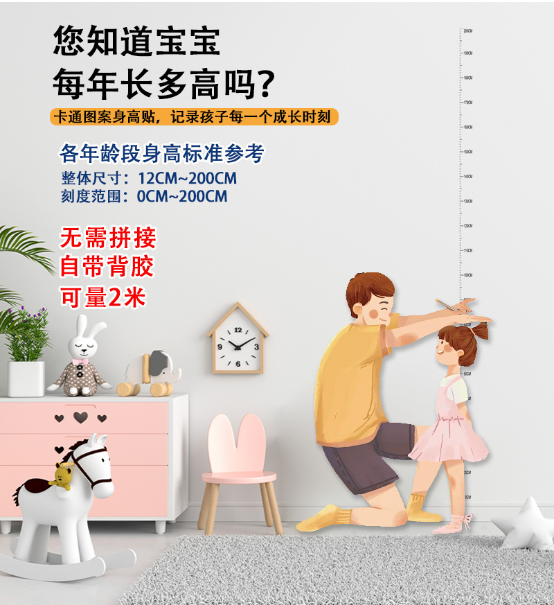 어린이 높이 스티커 학생 높이 스티커 측정 통치자 아기 벽 스티커 이동식 전체 방수 투명 높이 스티커스토어 가기