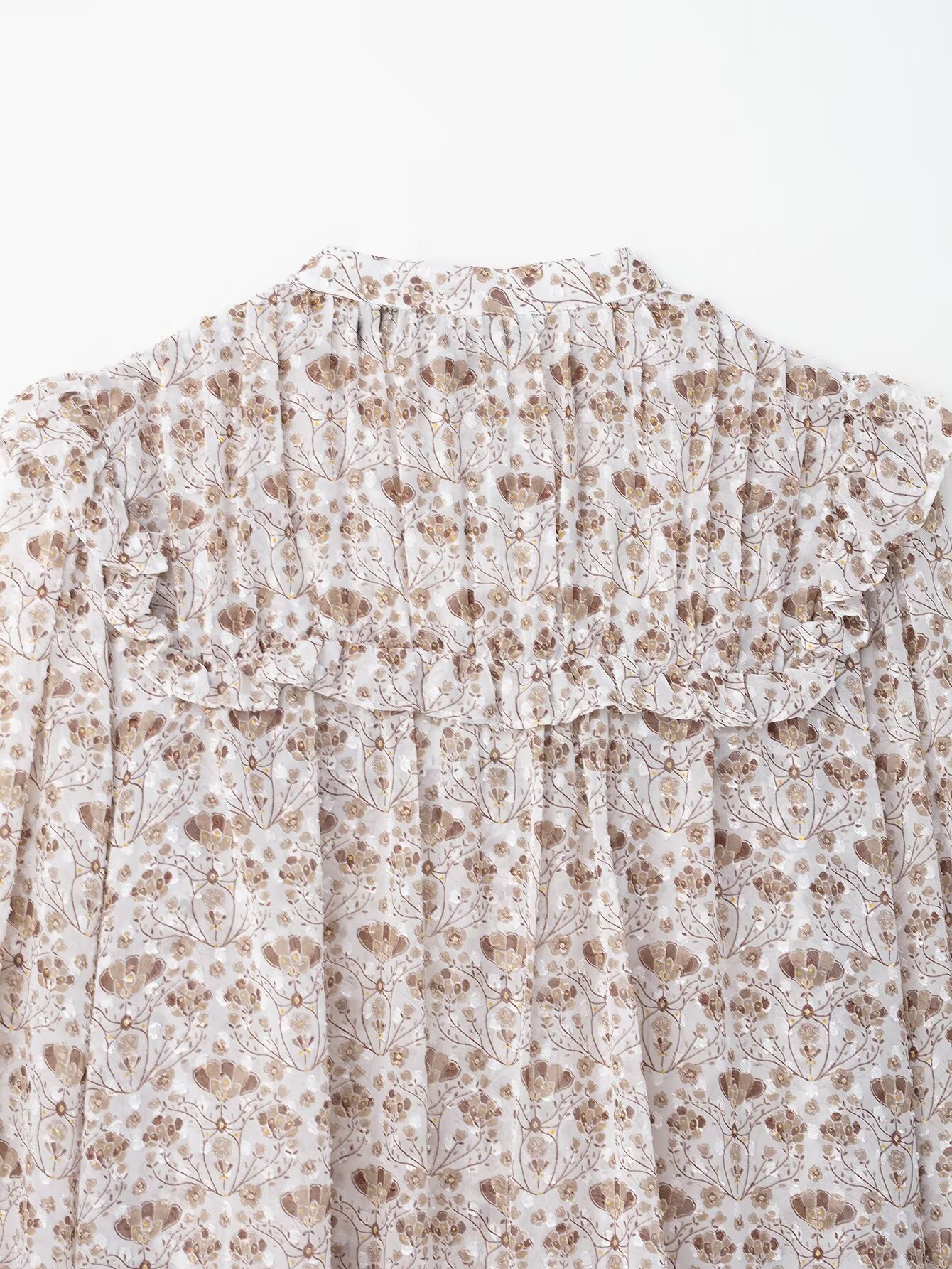 2025 년 봄 새로운 유럽과 미국의 국경 여성 스트리트 패션 캐주얼 조커 튤 프린트 셔츠 w03 6150
