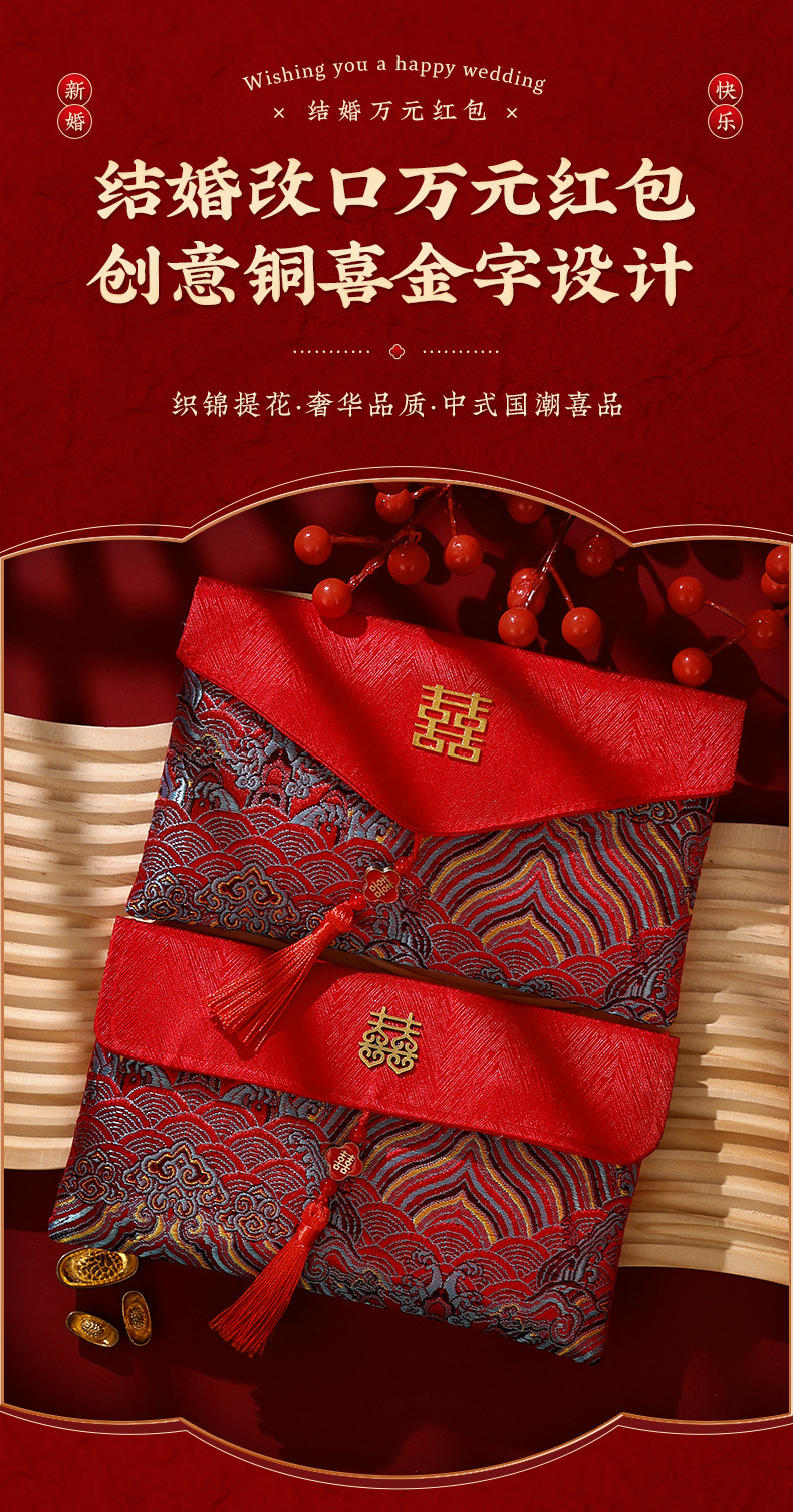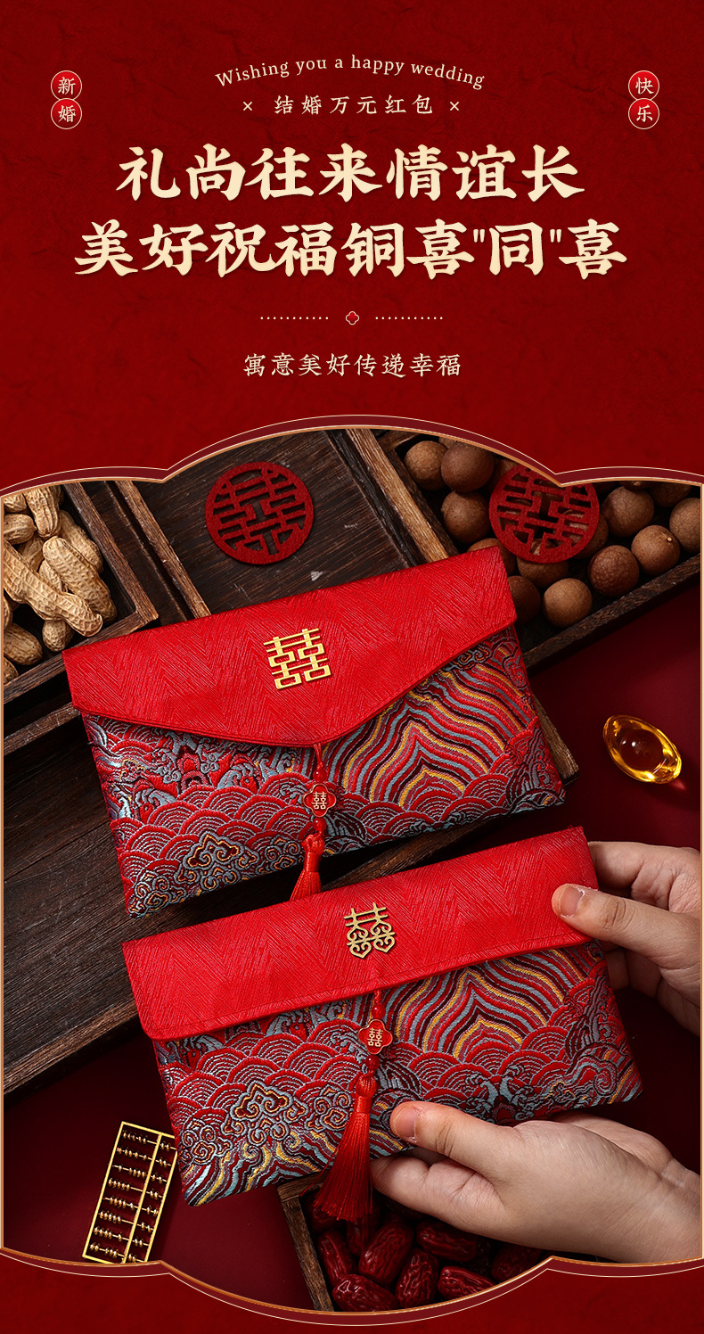 ✅변경 수수료 빨간 봉투 결혼식 회원 결혼식 5 새로운 느낌 만 위안 직물 빨간 봉투스토어 가기