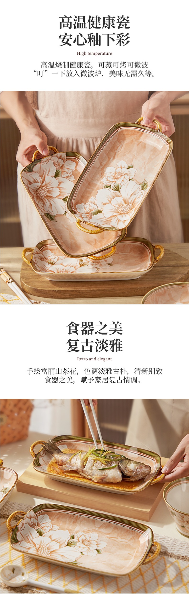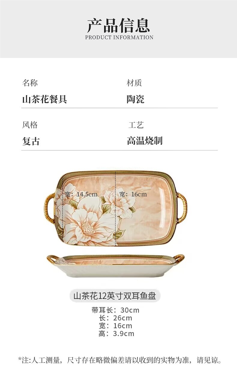 생선 요리 가정용 찐 생선 요리 동백 식기 가벼운 고급 생선 접시 세라믹 직사각형 생선 요리스토어 가기
