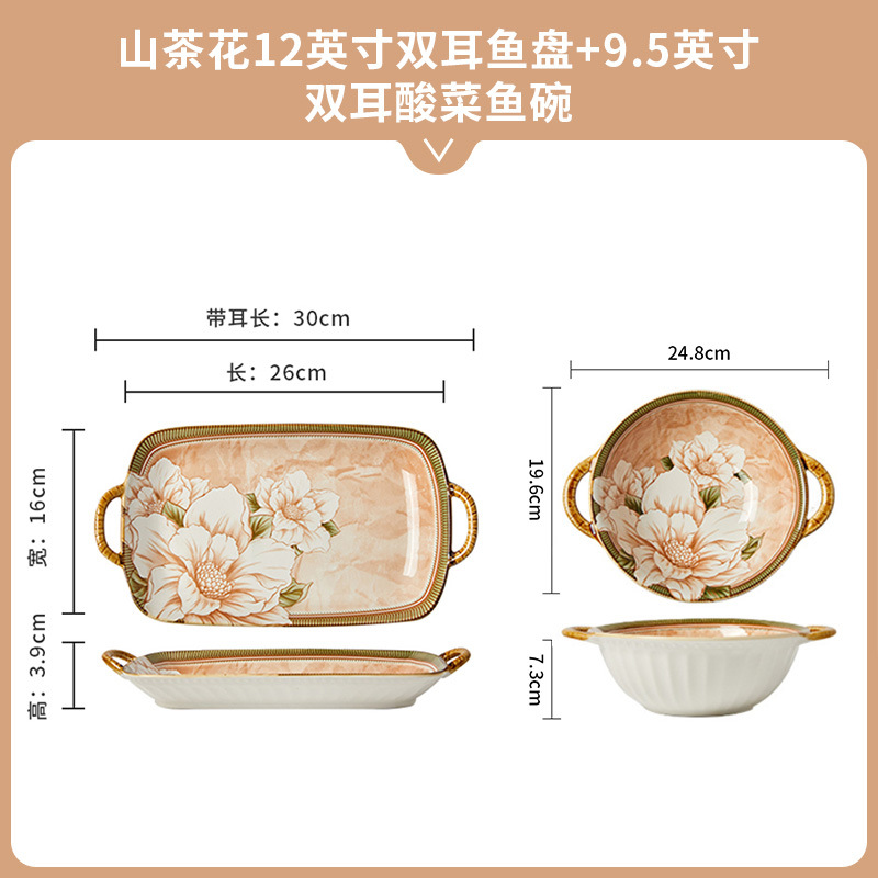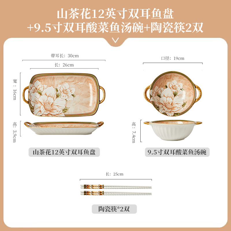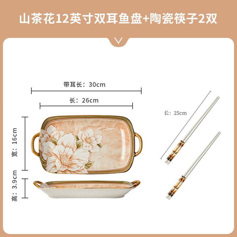 • 동백 12inch 쌍귀 생선 접시 + 9.5inch 쌍귀 소금에 절인 생선 수프 그릇 + 세라믹 젓가락 2 쌍