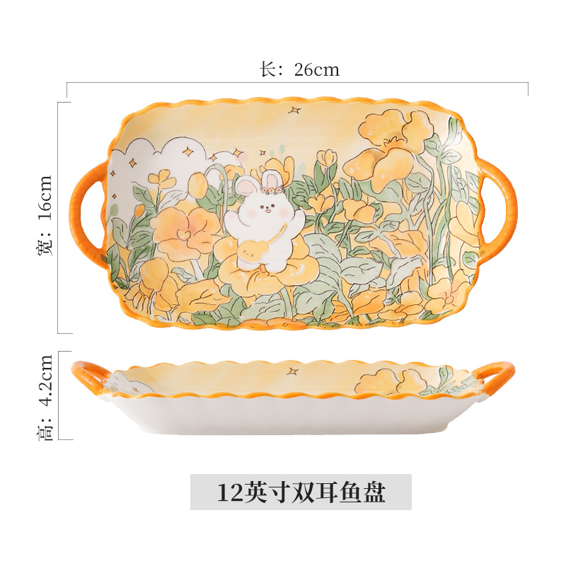 • 꽃속의 토끼 12inch 쌍귀 물고기 접시
