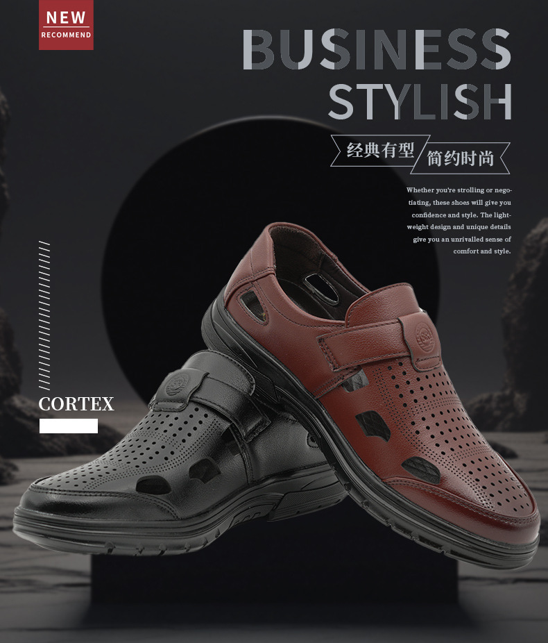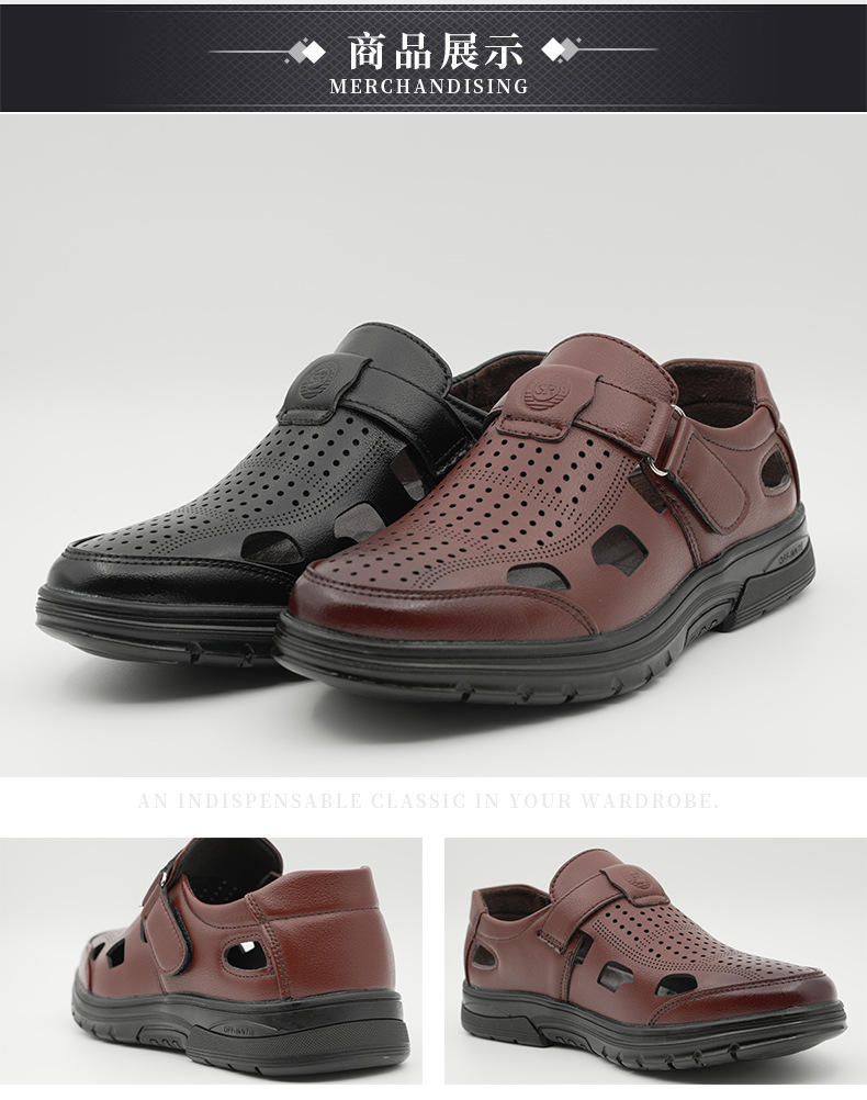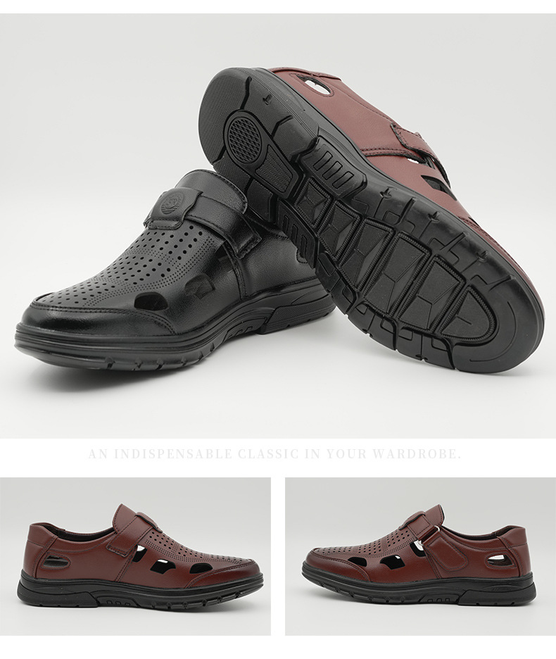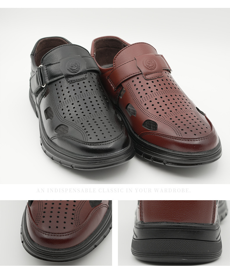 남성용 크로스보더 가죽 신발, 비즈니스 패션, 캐주얼 정장 신발, 부드러운 밑창 여름 샌들, 중년 및 노인 해변 신발스토어 가기