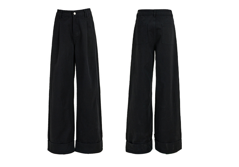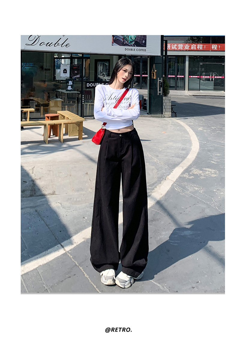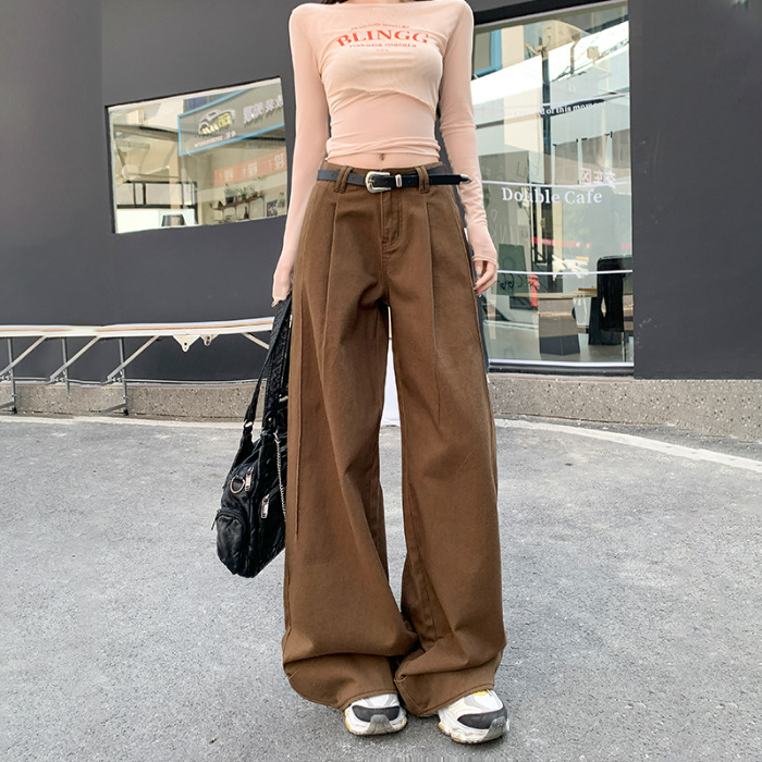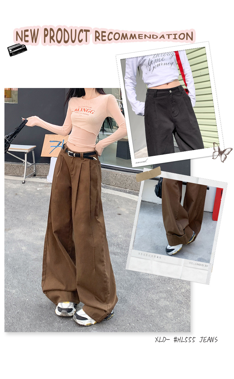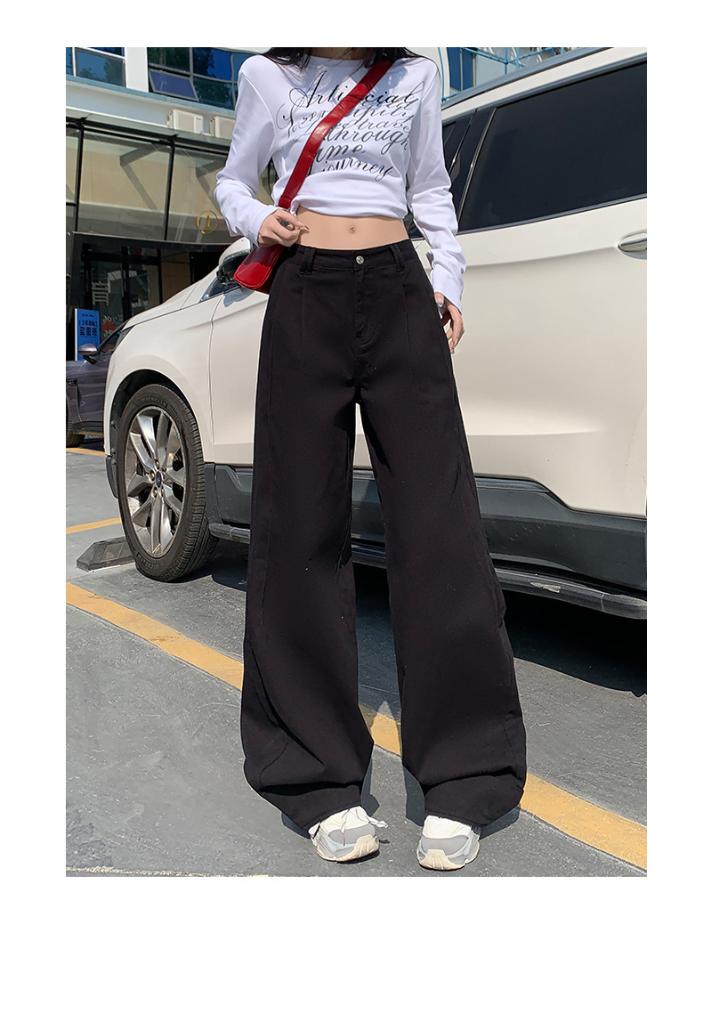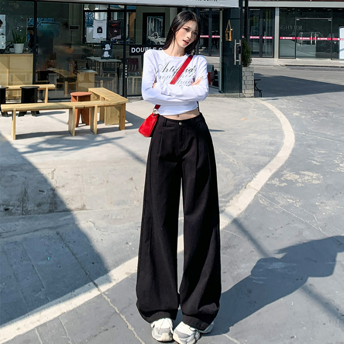 2025 여름 새로운 솔리드 컬러 느슨한 넓은 다리 바지 여자 올매치 느슨한 한국 스타일 높은 허리 슬리밍 통근 데님 바지스토어 가기