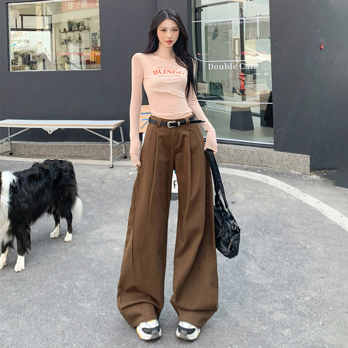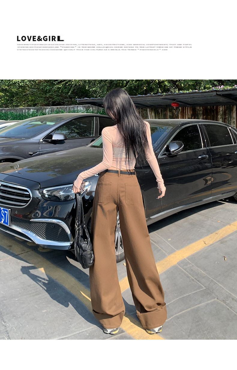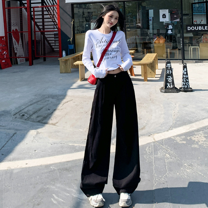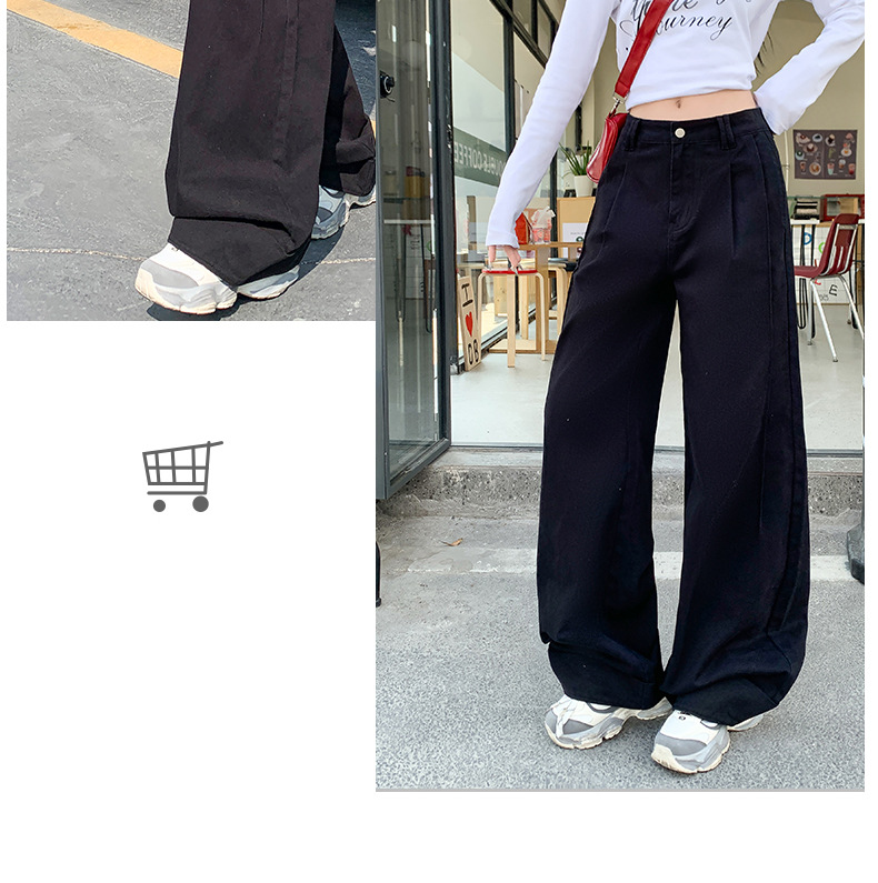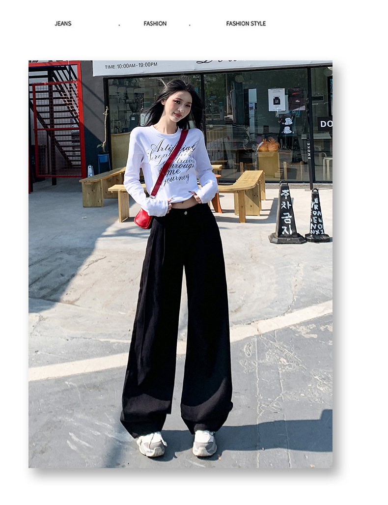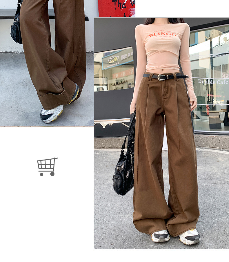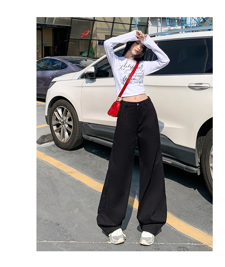 2025 여름 새로운 솔리드 컬러 느슨한 넓은 다리 바지 여자 올매치 느슨한 한국 스타일 높은 허리 슬리밍 통근 데님 바지스토어 가기