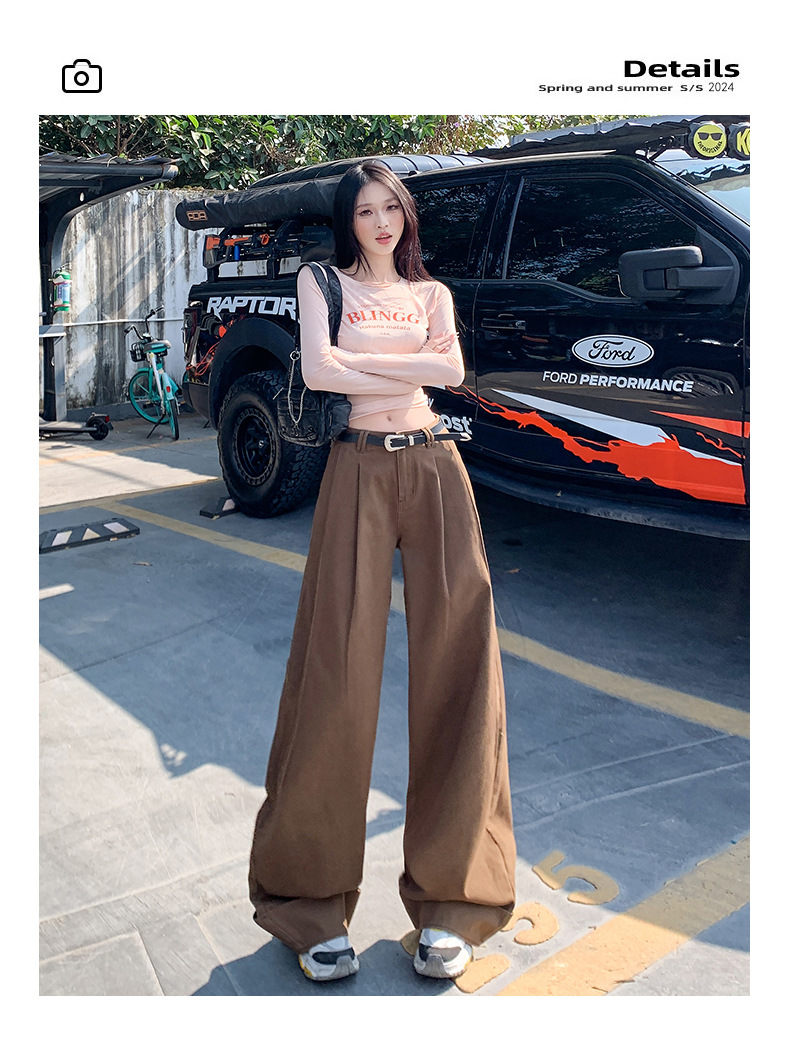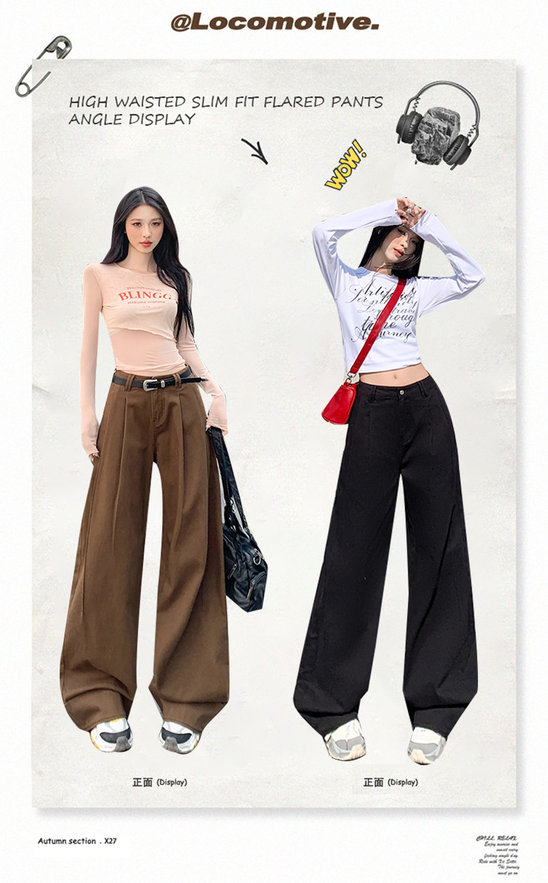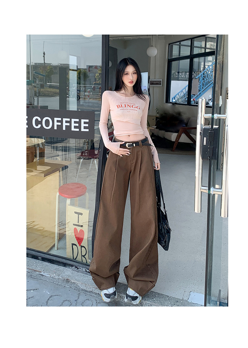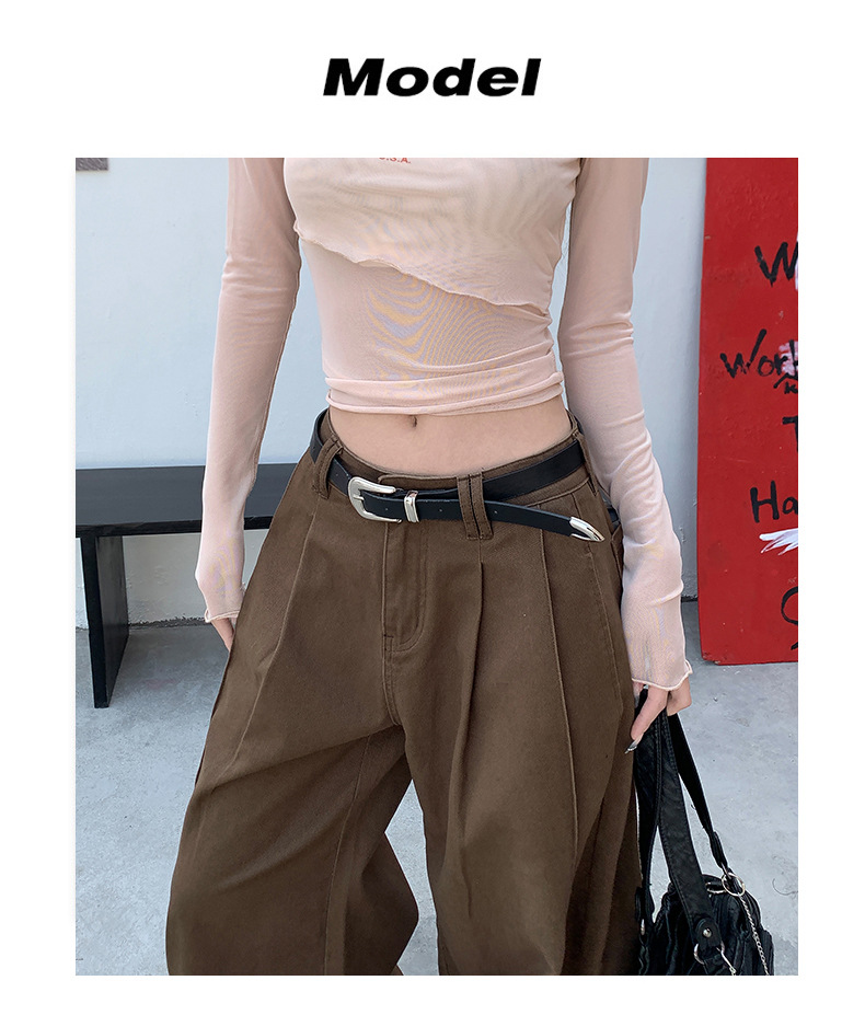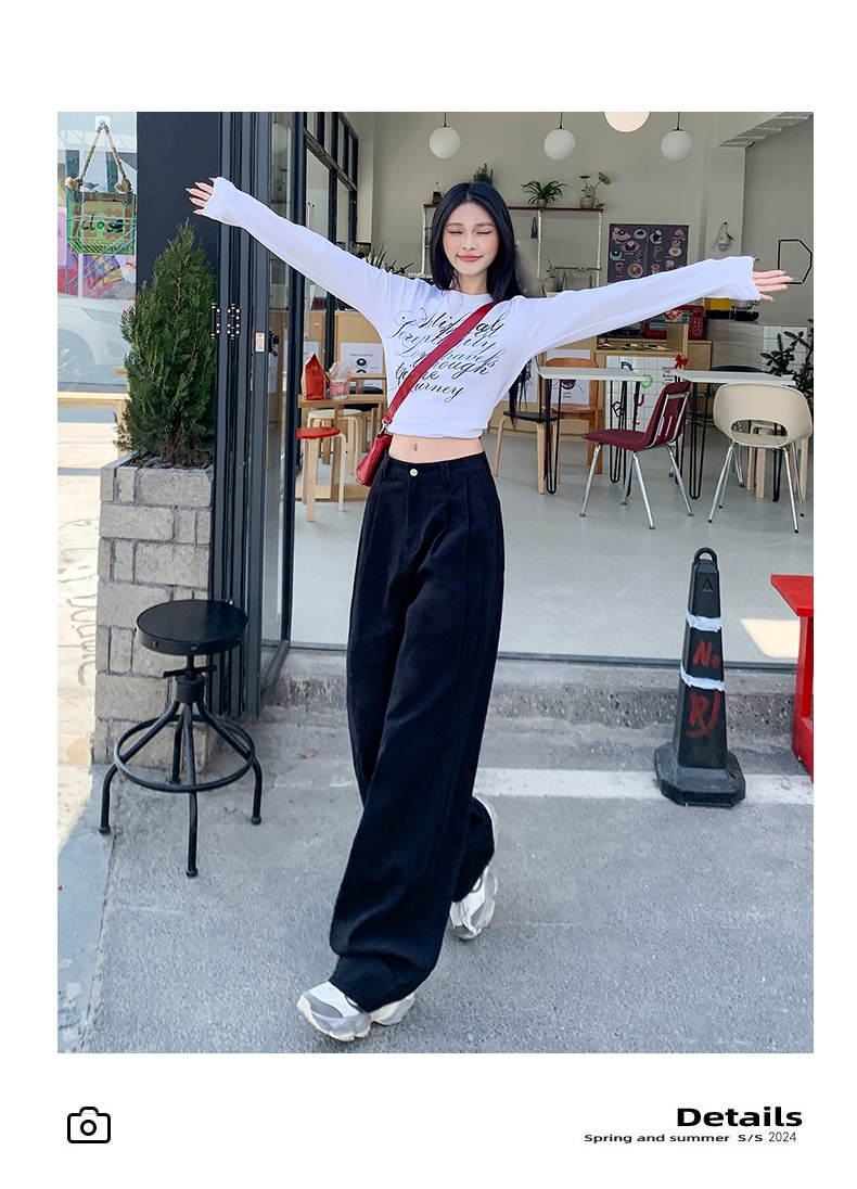 2025 여름 새로운 솔리드 컬러 느슨한 넓은 다리 바지 여자 올매치 느슨한 한국 스타일 높은 허리 슬리밍 통근 데님 바지스토어 가기