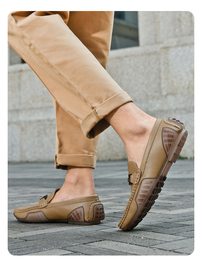 라이브 크로스 보더 정품 가죽 기모 더그 신발 유행 캐주얼 가죽 신발 카우보이 슬립 온 운전 트렌디 한 신발 플러스 사이즈 남성 신발