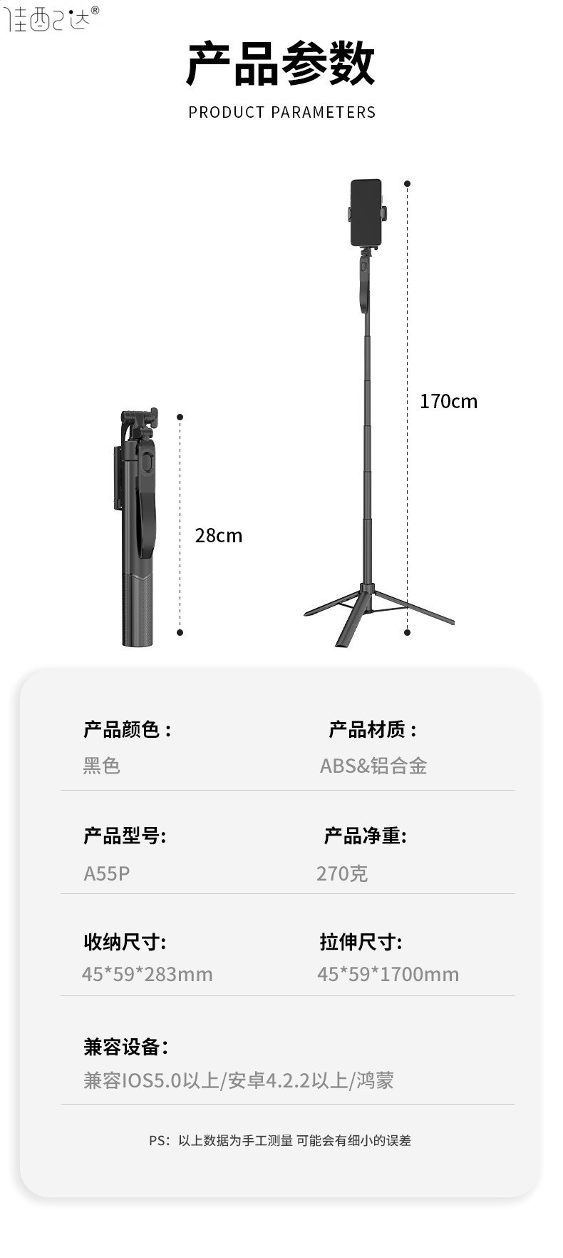 A55S 휴대 전화 블루투스 셀카 스틱 휴대용 안정기 바닥 서 라이브 방송 브래킷 삼각대 유니버설 셀카 스틱 브래킷