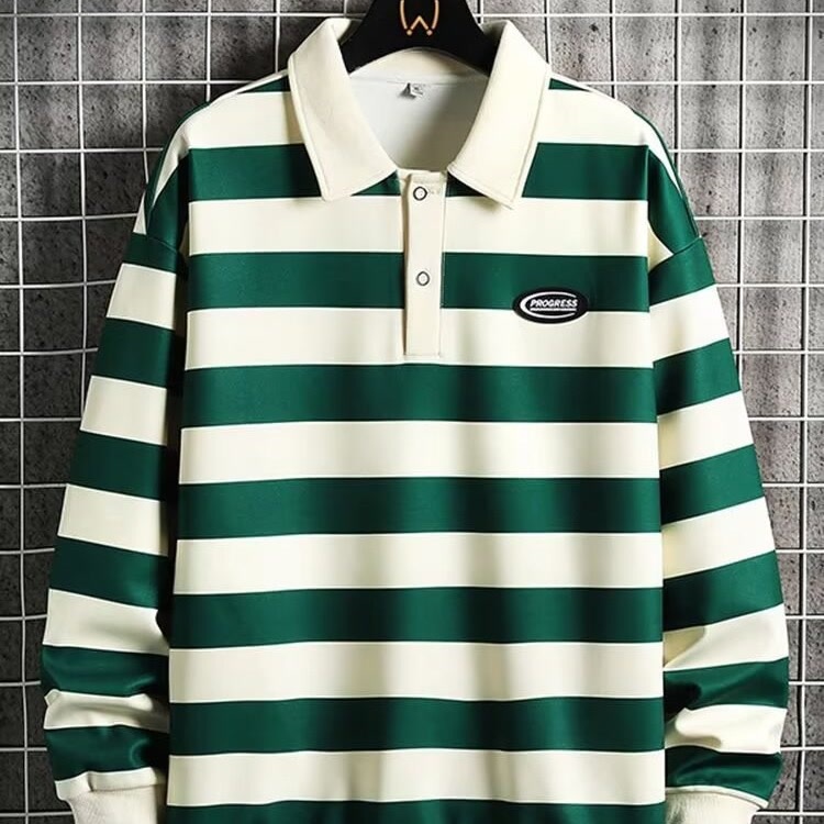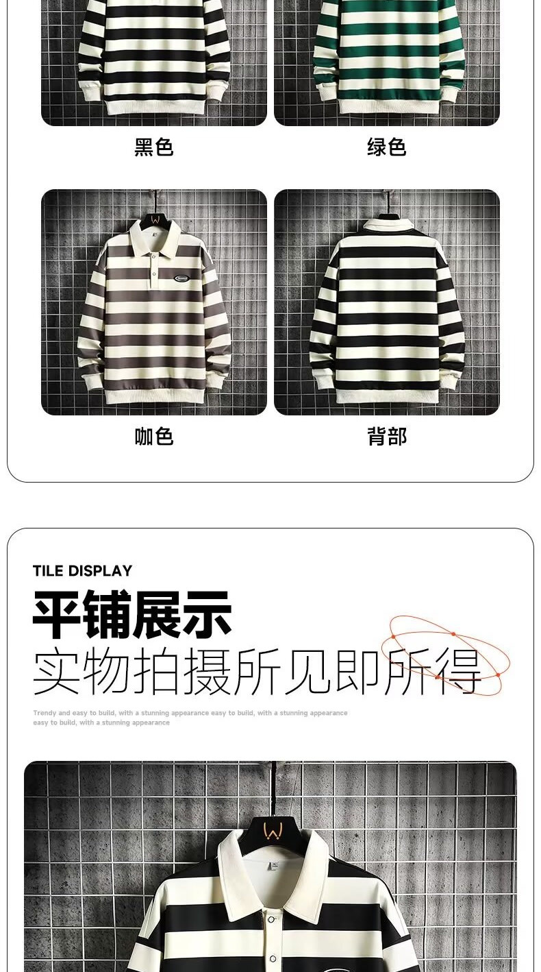 가로 줄무늬 긴팔 티셔츠 남자 봄과 가을 2025 새로운 느슨한 대외 무역 옷깃 폴로 셔츠 남자 풀오버 스웨터스토어 가기