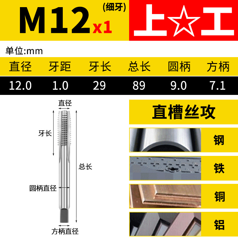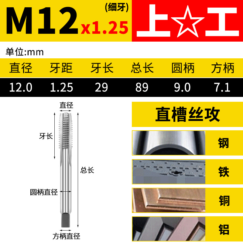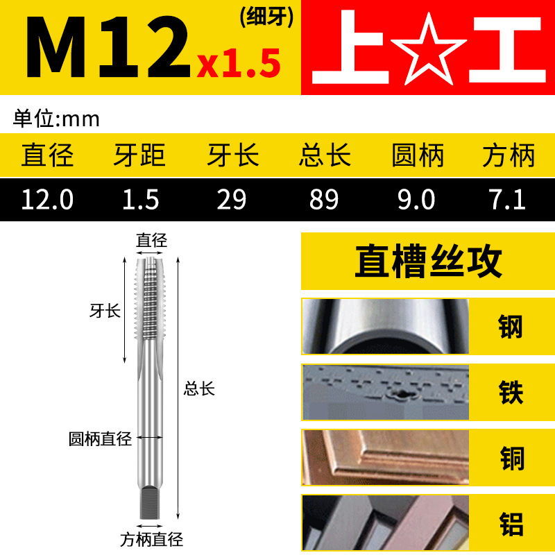 • 위에 ☆ 공업용 와이어 탭 M12*1.5(미세 톱니)