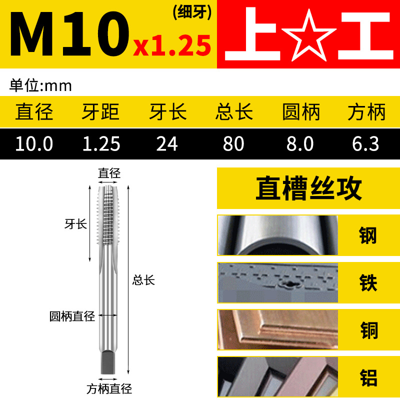 • 위에☆공업용 와이어 탭 M10*1.25(미세 톱니)