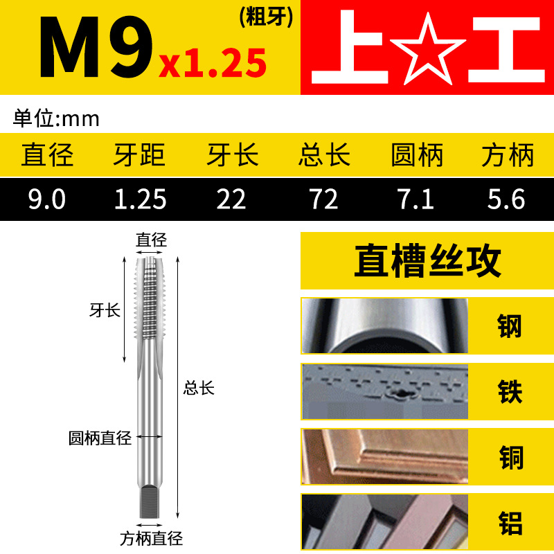 • 위에☆공업용 와이어 탭 M9*1.25(굵은 나사)