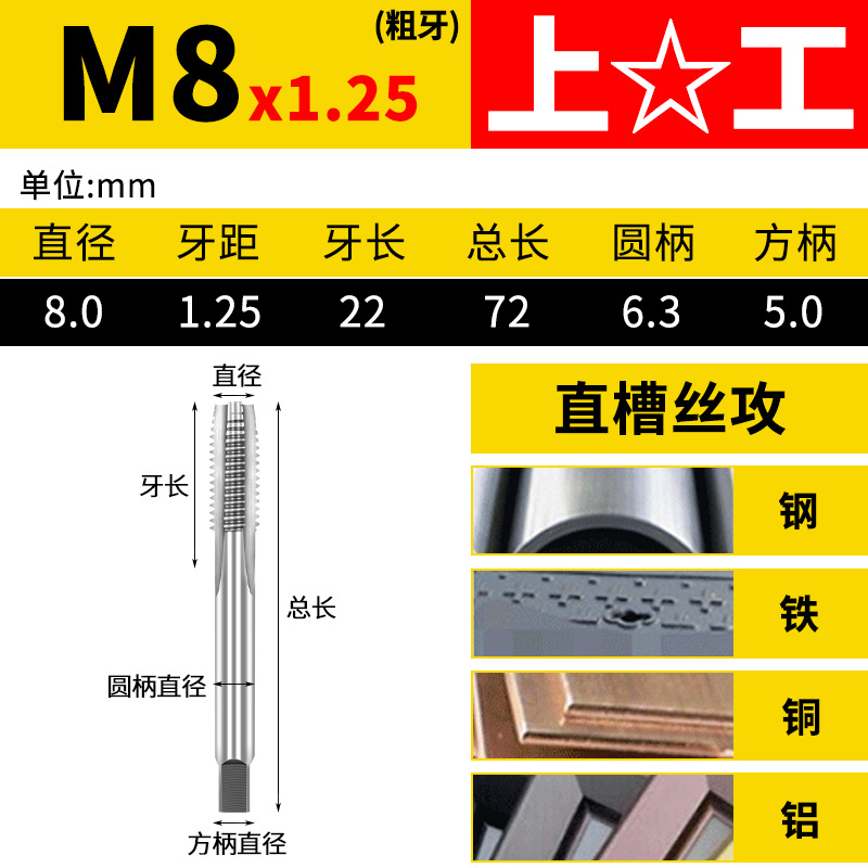 • 위에☆공업용 와이어 탭 M8*1.25(굵은 나사)