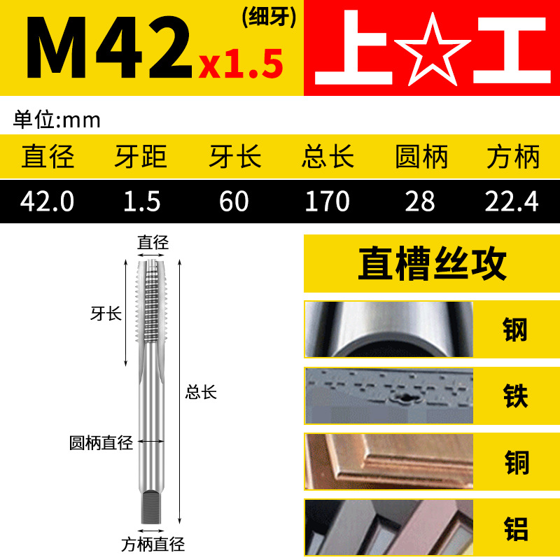 • 위에☆공업용 와이어 탭 M42*1.5(미세 톱니)
