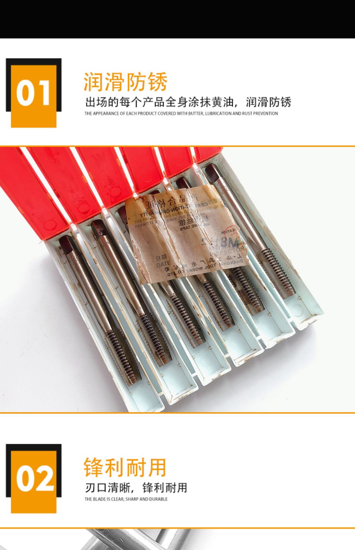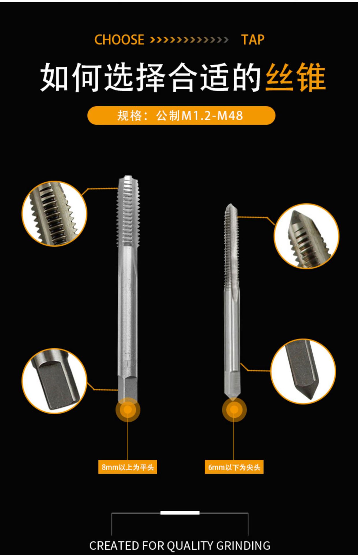 상단 작업 탭 탭 고속 강철 기계 탭 상단 작업 스트레이트 플루트 탭 헤드 콘 하단 콘 M3M4M5M6M8M10