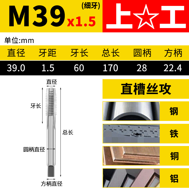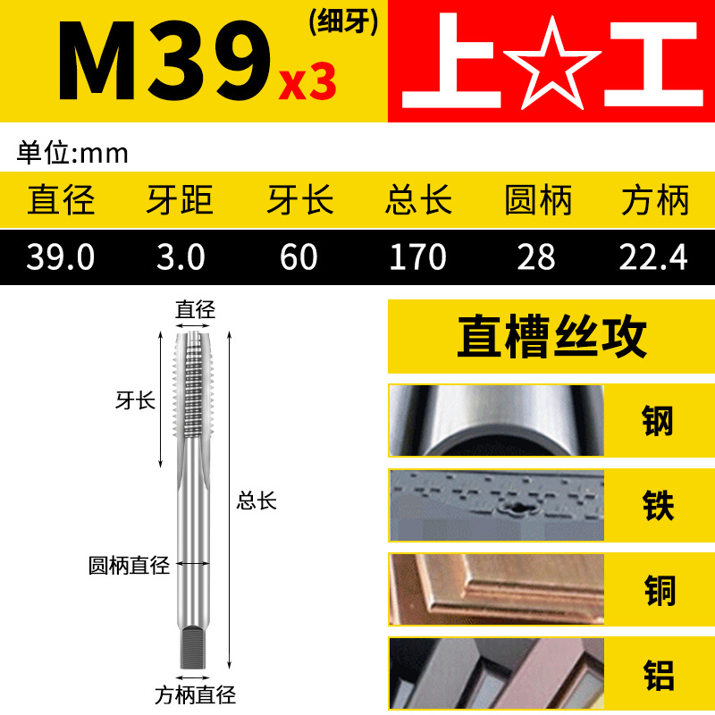 • 위에☆공업용 와이어 탭 M39*4(굵은 나사)