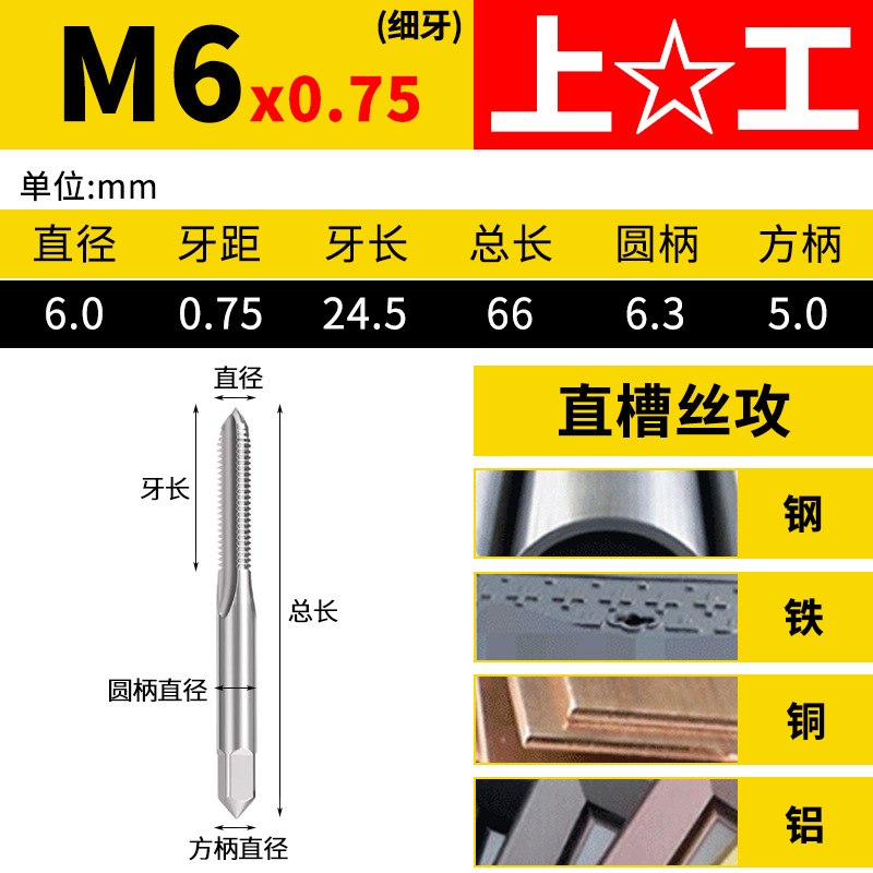• 위에☆공업용 와이어 탭 M6*0.75(미세 톱니)