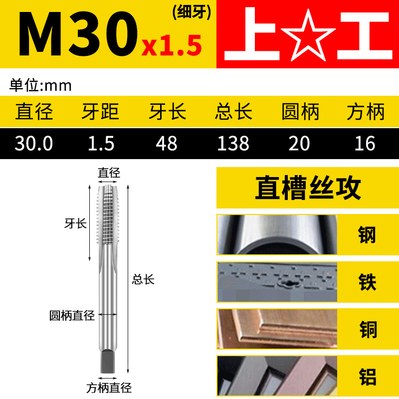 • 위에☆공업용 와이어 탭 M30*1.5(미세 톱니)