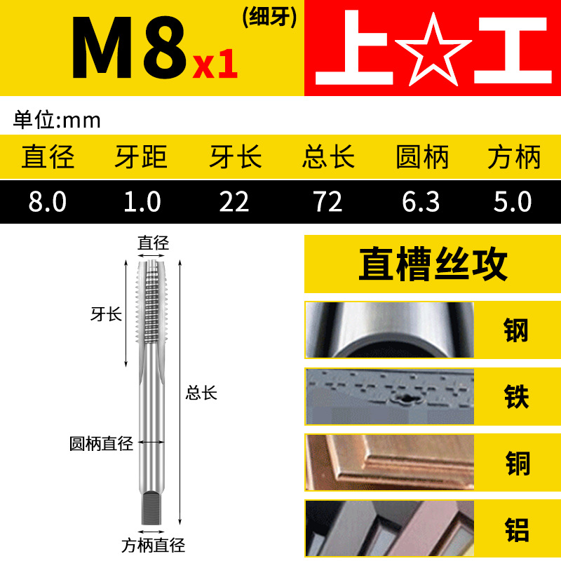 • 위에☆공업용 와이어 탭 M8*1(미세 톱니)