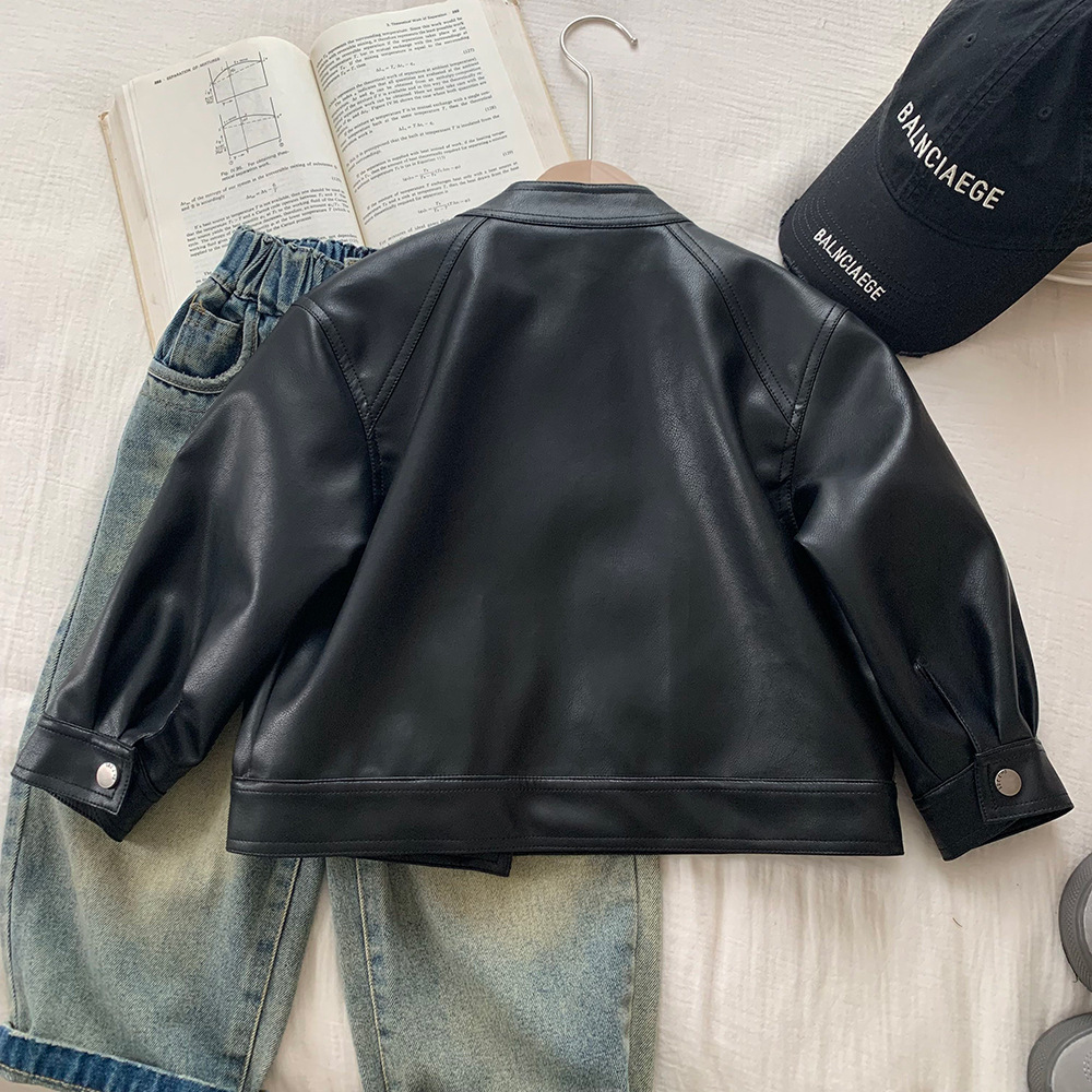 소년 가죽 코트 봄과 가을 새로운 2025 어린이 잘 생긴 탑 중소형 어린이 오토바이 스타일 베이비 재킷스토어 가기