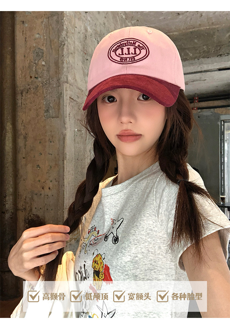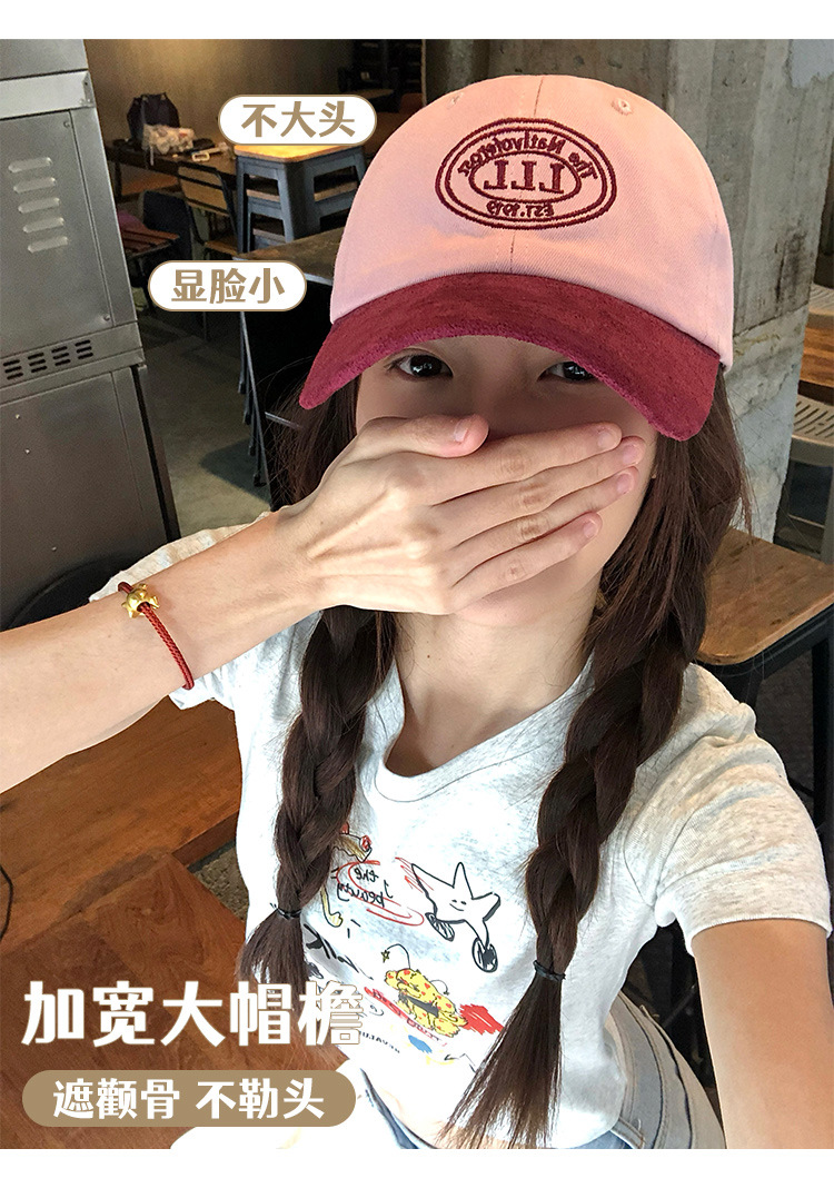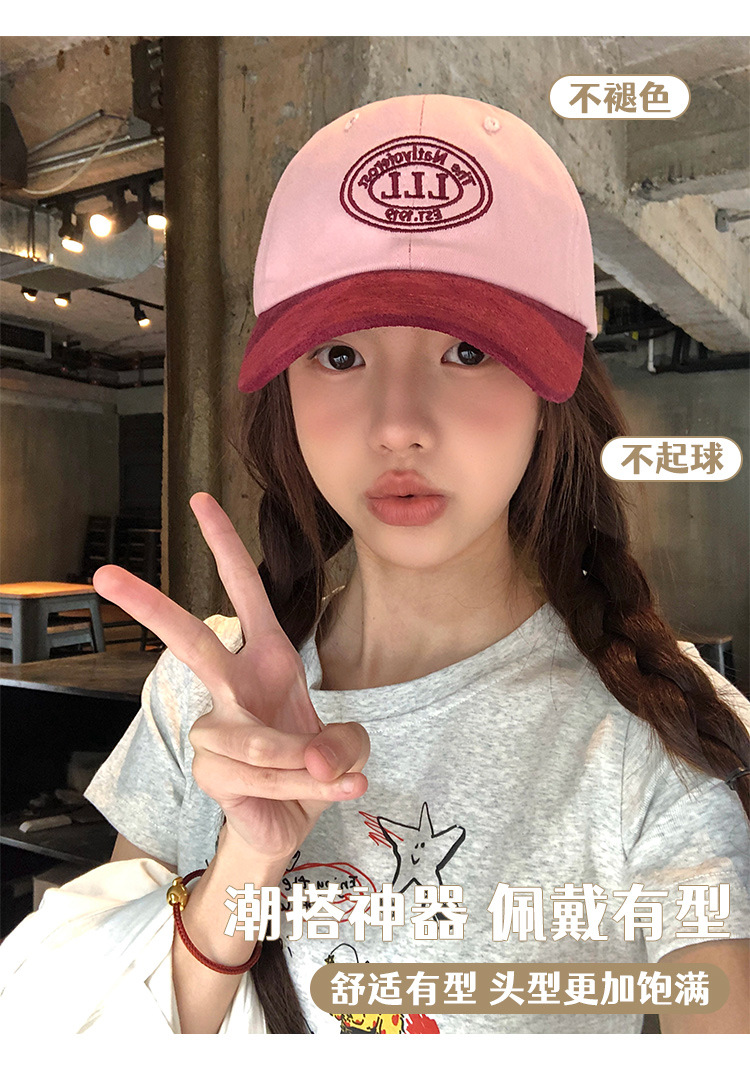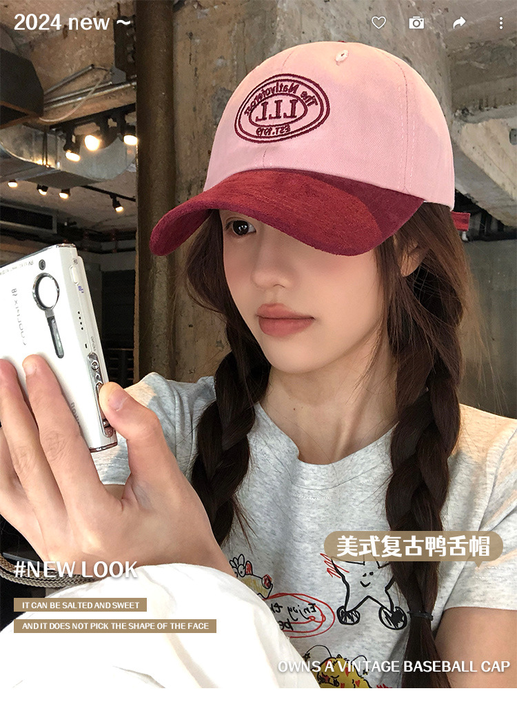 아메리칸 스타일 칼리지 스타일 컬러 접합 편지 자수 야구 모자 여성 한국 스타일 패션 브랜드 페이스 쇼 소프트 탑 오리 혀 모자스토어 가기