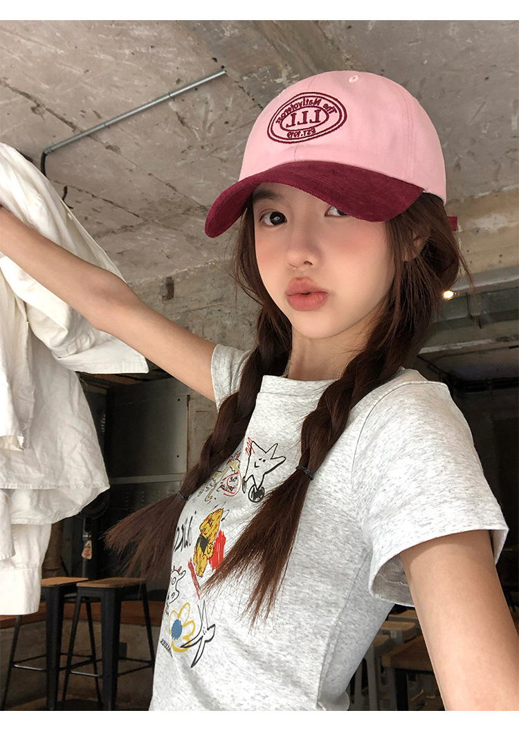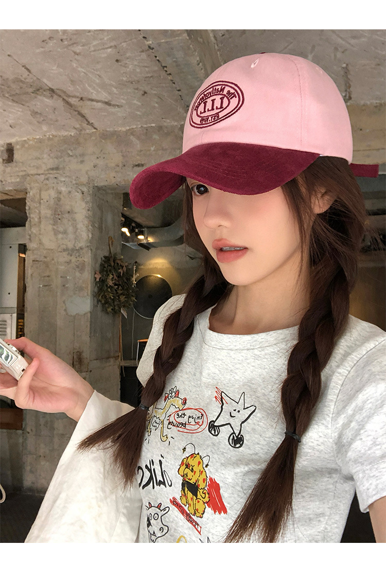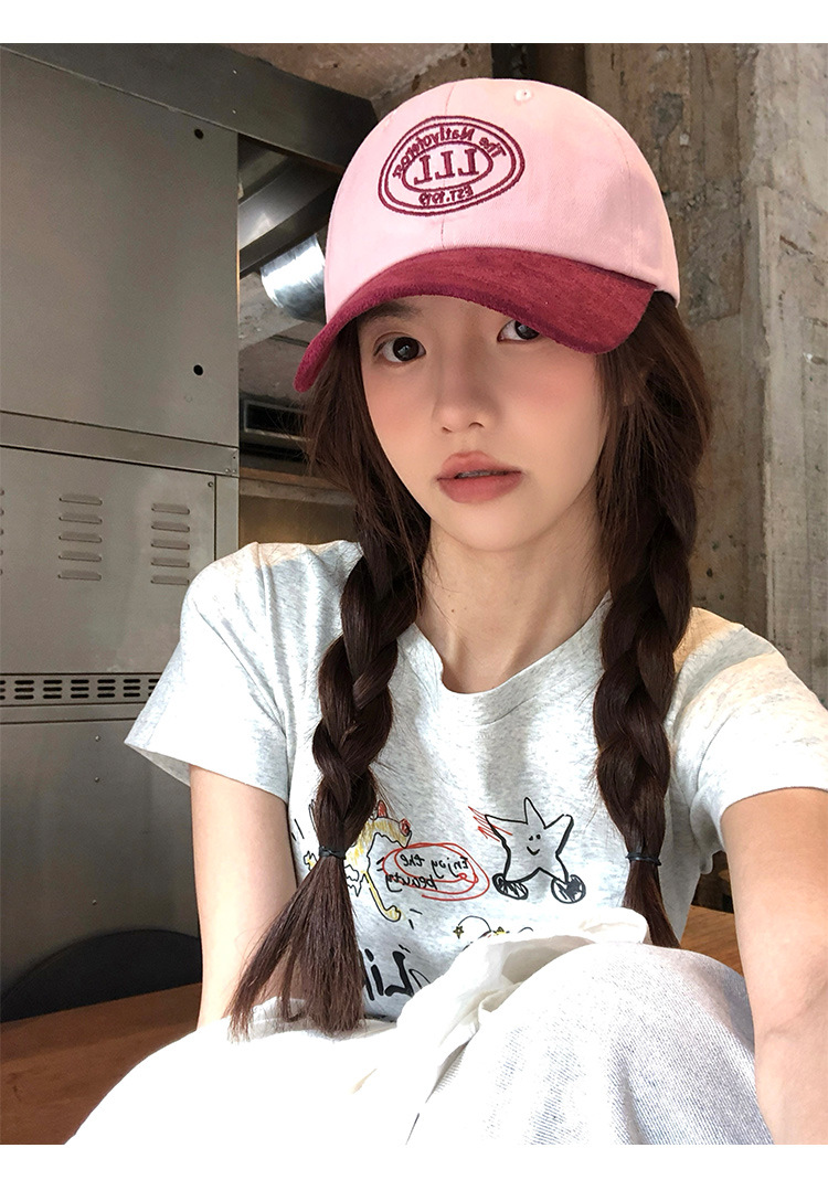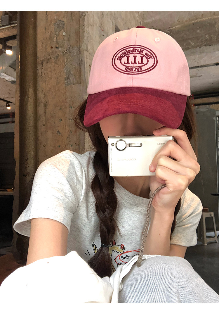 아메리칸 스타일 칼리지 스타일 컬러 접합 편지 자수 야구 모자 여성 한국 스타일 패션 브랜드 페이스 쇼 소프트 탑 오리 혀 모자스토어 가기