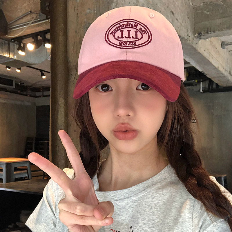 아메리칸 스타일 칼리지 스타일 컬러 접합 편지 자수 야구 모자 여성 한국 스타일 패션 브랜드 페이스 쇼 소프트 탑 오리 혀 모자