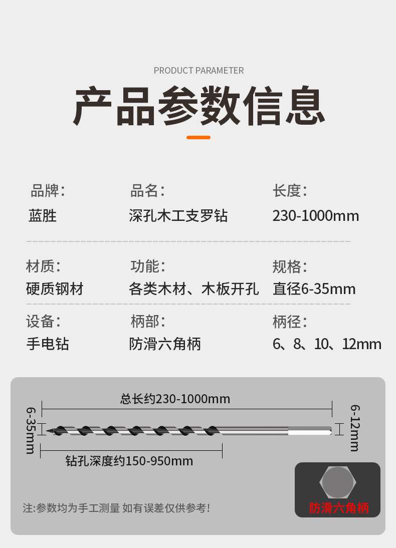Lansheng 딥 홀 조이 드릴 목수 육각형 핸들 전기 드릴 우드 도어 패널 홀 커터 굴착 트위스트 드릴