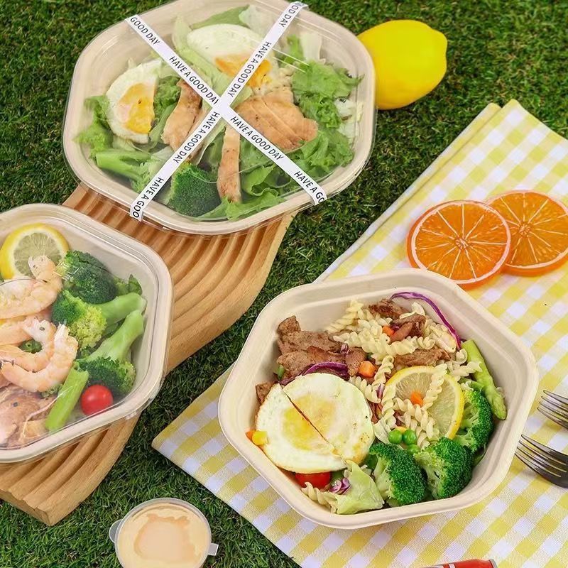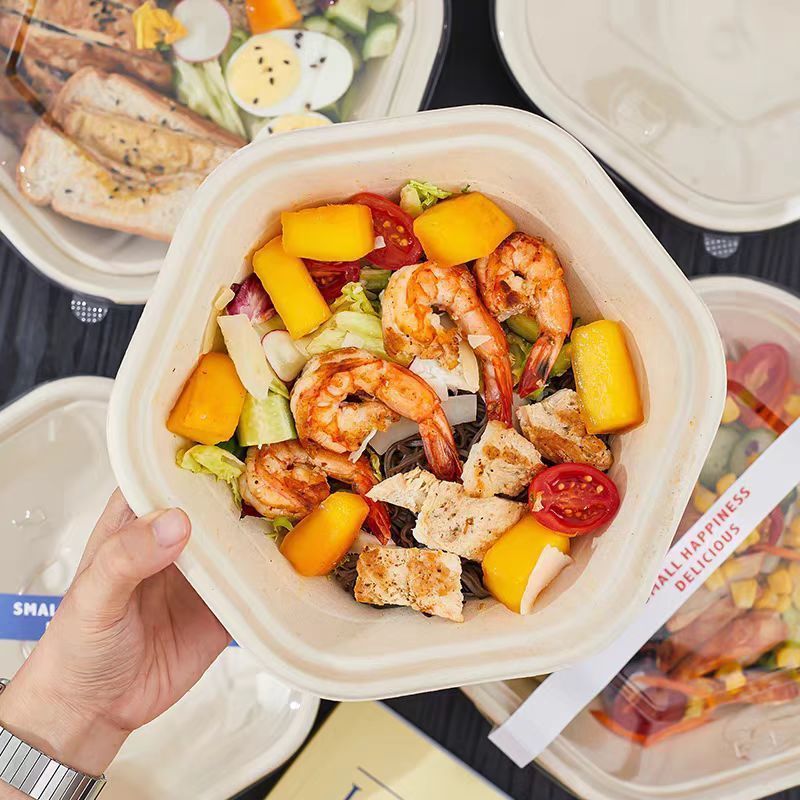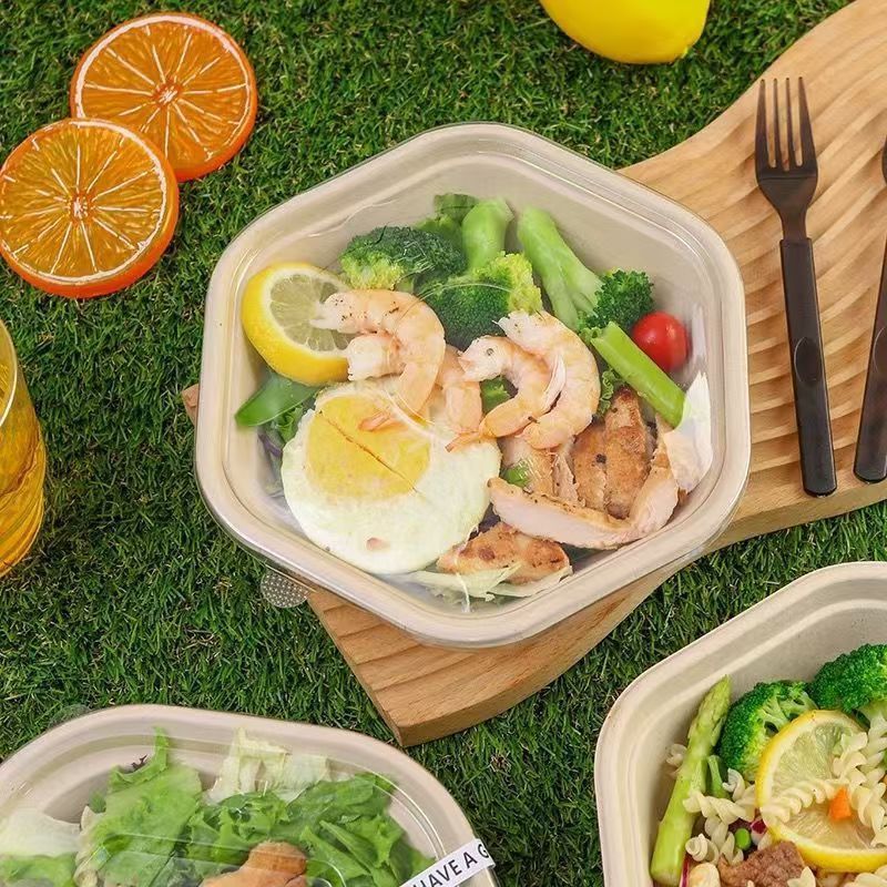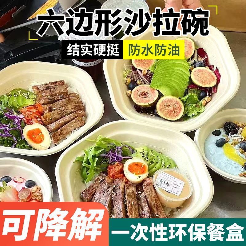 종이 그릇 테이크 아웃 포장 상자 일회용 도시락 테이크 아웃 생분해 성 도시락 샐러드 종이 그릇 육각형 가벼운 식품 펄프