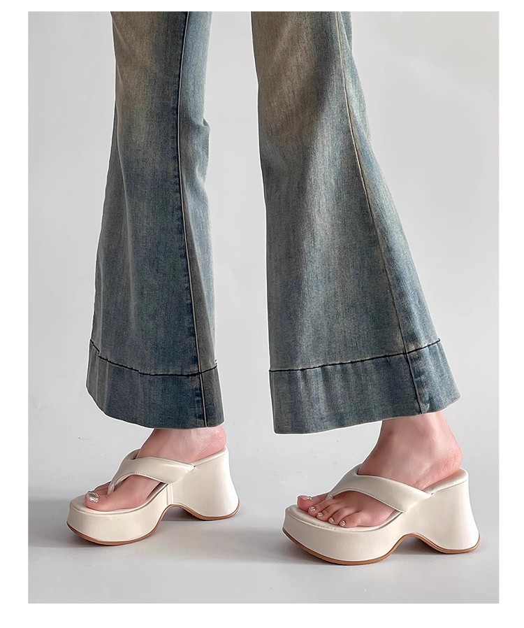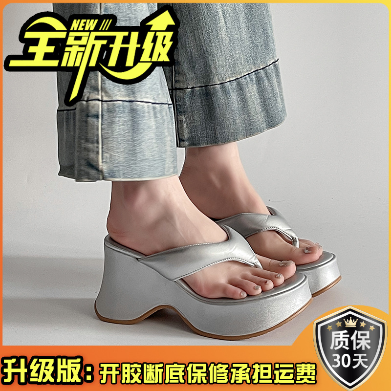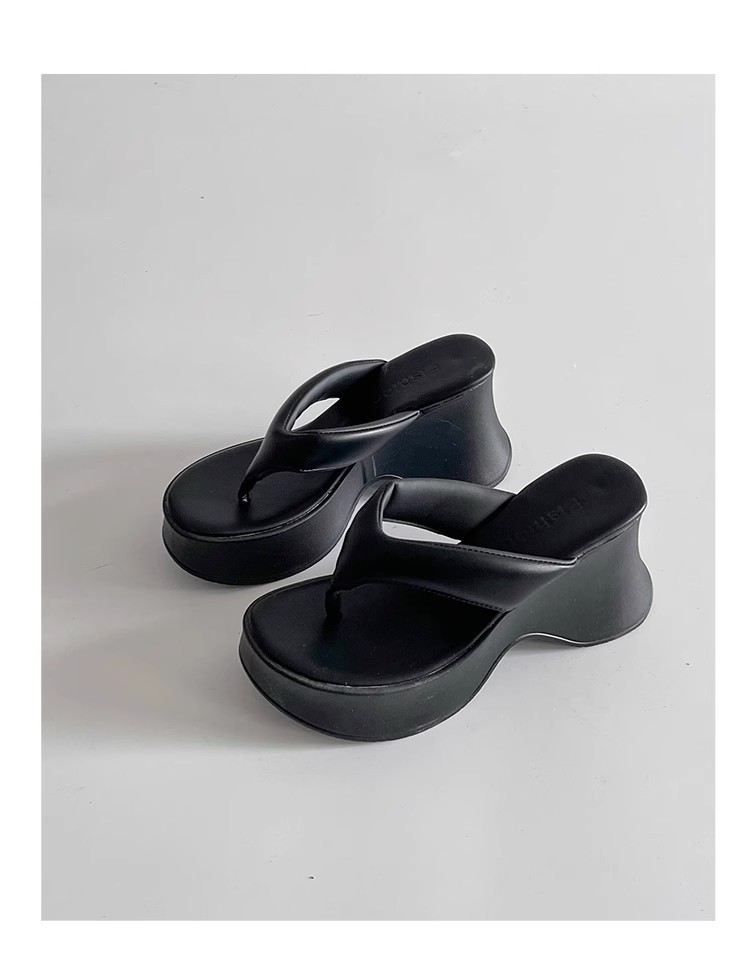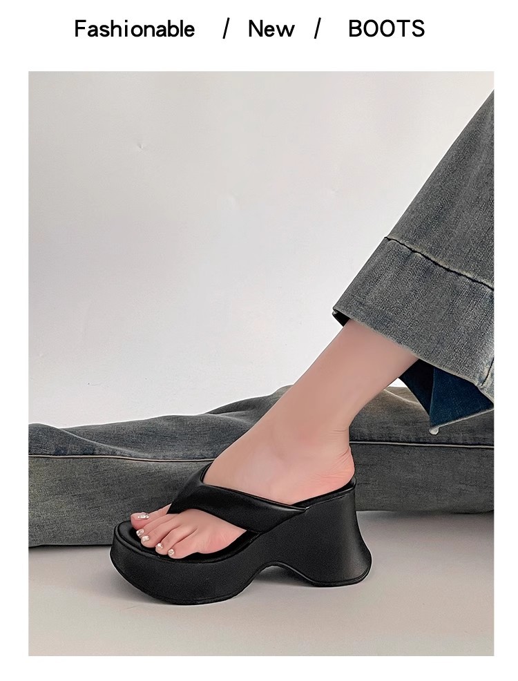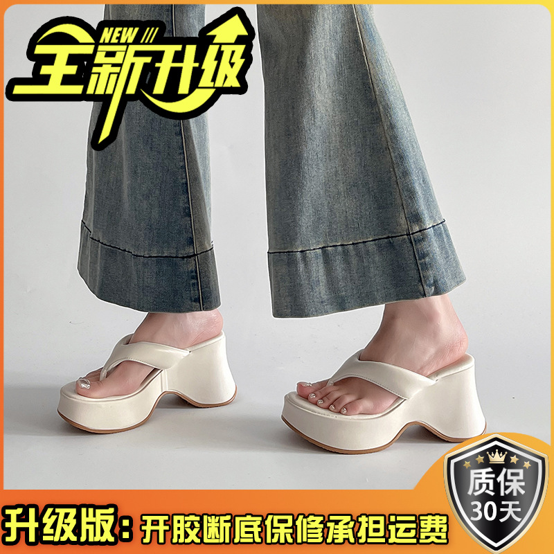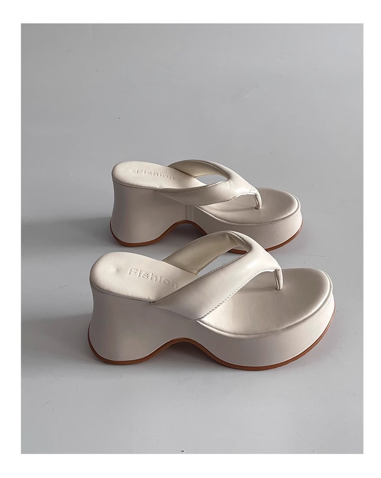 봄과 여름 새로운 간단한 패션 슬리퍼 우아한 달콤한 스타일 라운드 발가락 플랫폼 하단 여성의 플립 플롭은 외부 쿨스토어 가기