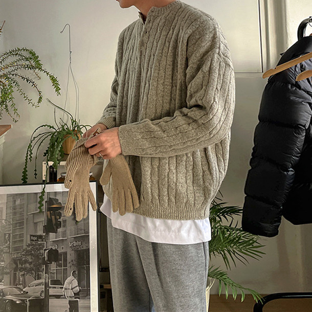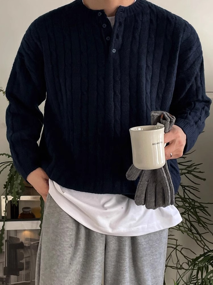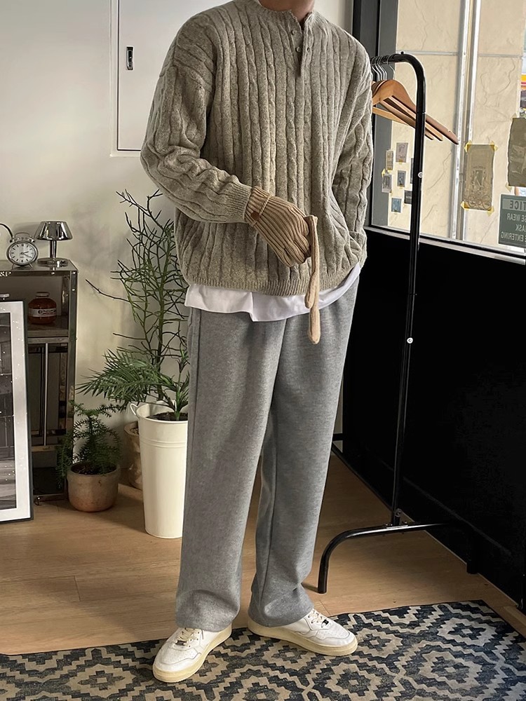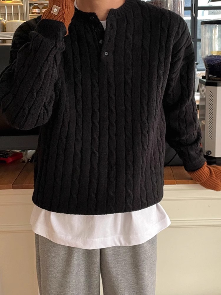 2025 봄 칼라 트위스트 풀오버 스웨터 남자 가을과 겨울 게으른 따뜻한 착용 한국 유행 느슨한 니트 스웨터스토어 가기