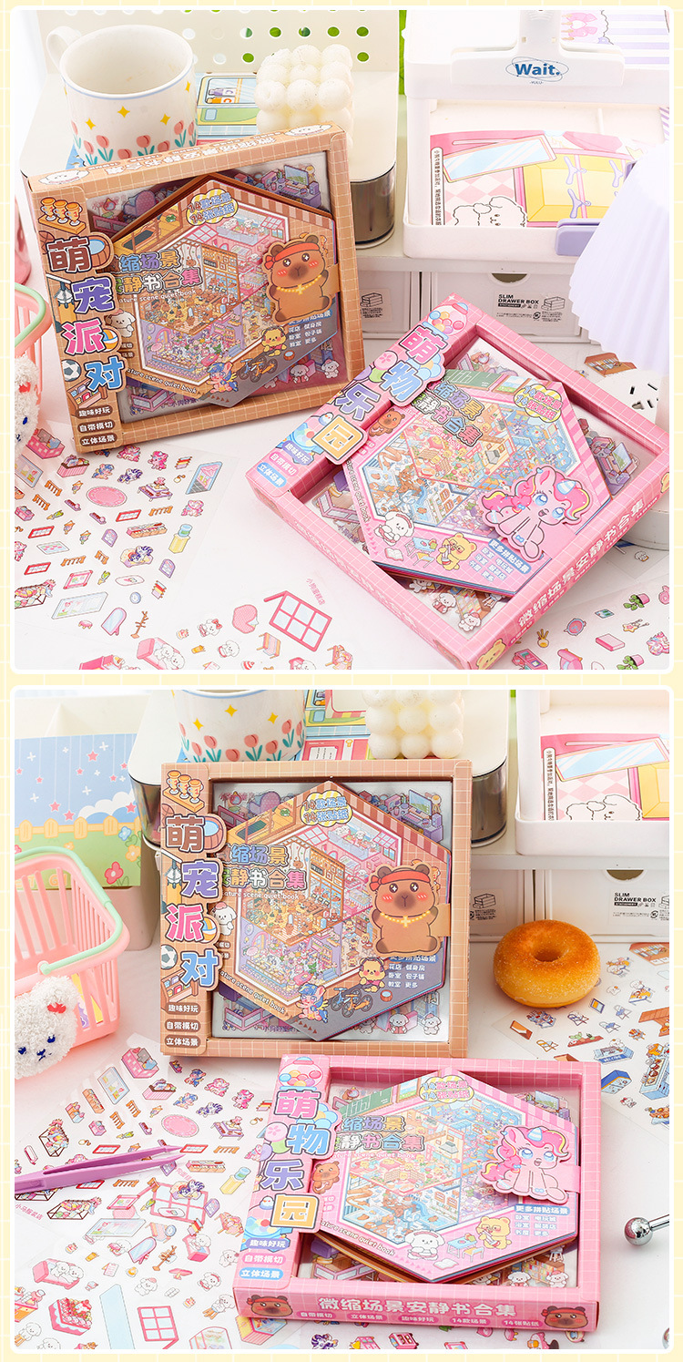마이크로 장면 조용한 책 컬렉션이 3D 3 차원 오두막 쌓인 스티커 장식 재료 조경 스티커 선물 상자