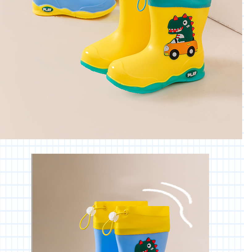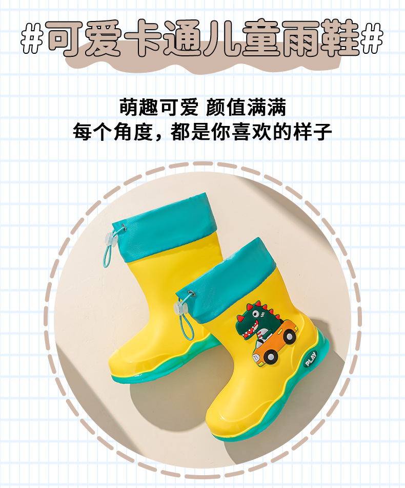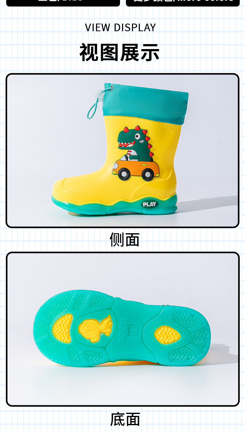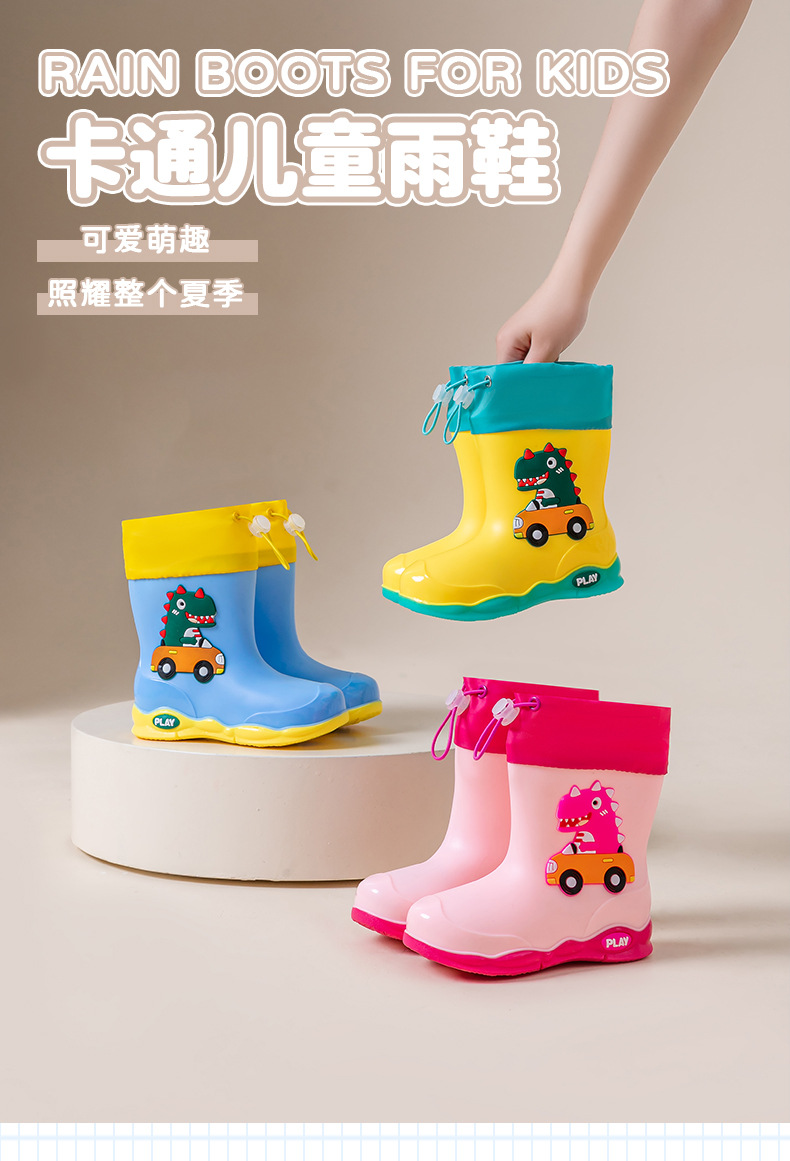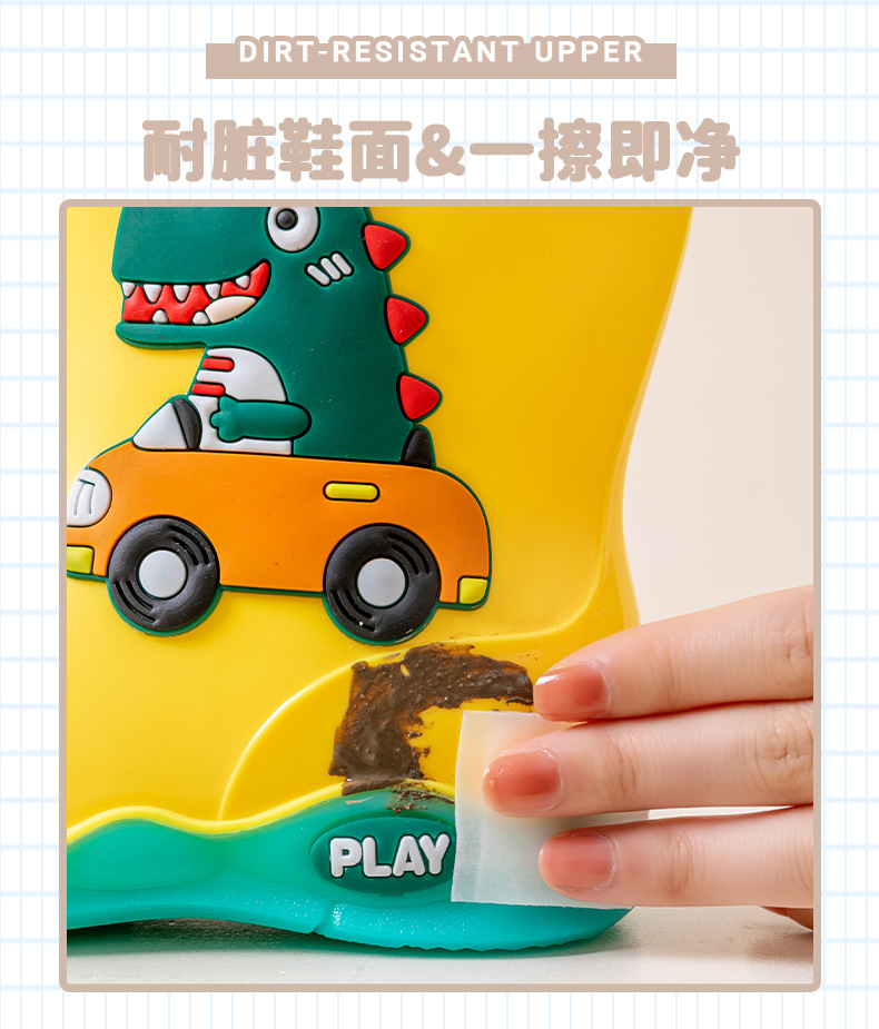 어린이 물 신발 학생의 물 부츠 아기 공룡 만화 장화 소녀의 방수 미끄럼 방지 소년 어린이 장화