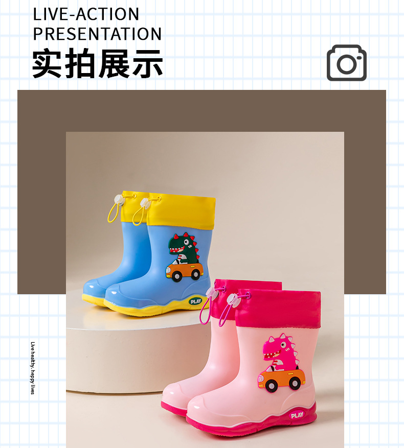 어린이 물 신발 학생의 물 부츠 아기 공룡 만화 장화 소녀의 방수 미끄럼 방지 소년 어린이 장화스토어 가기