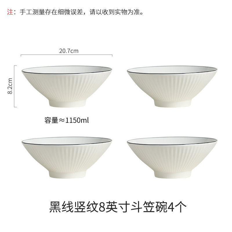 • 검은 선 세로 무늬 8inch 대나무 모자 그릇 4개